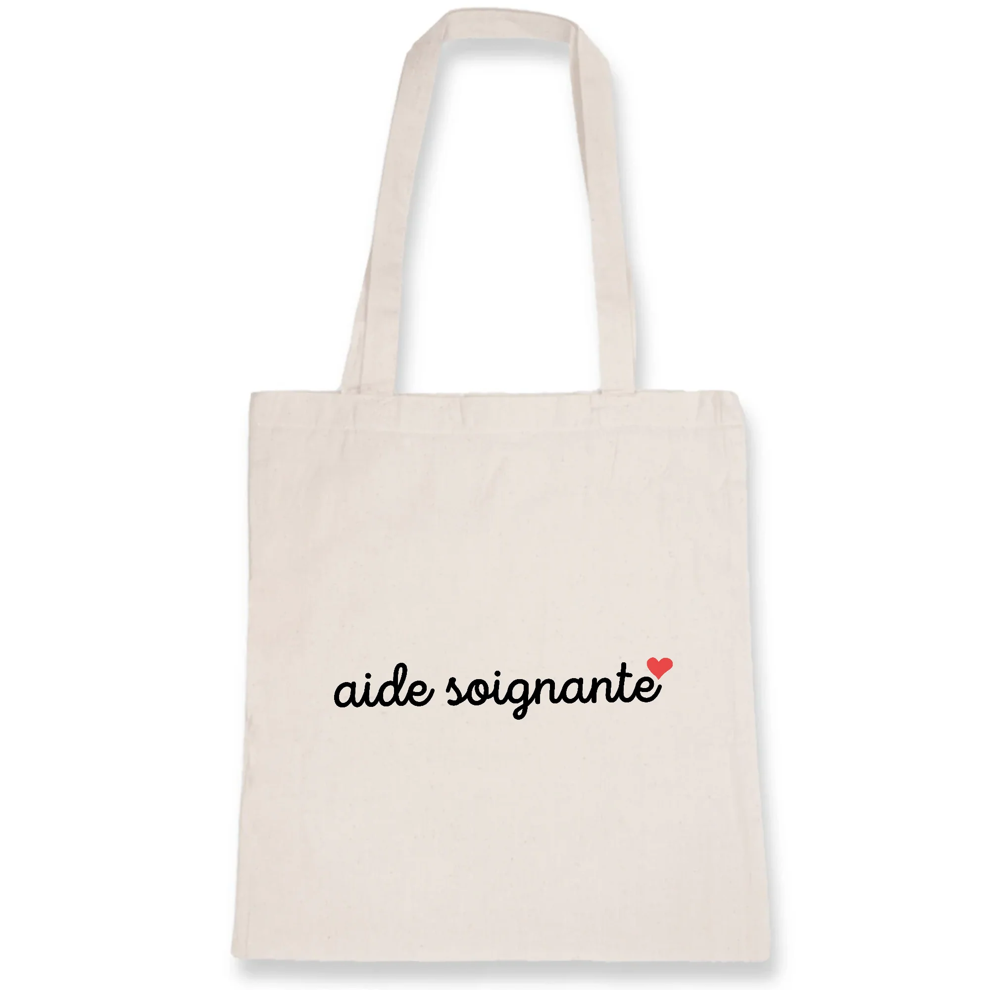 Un tote bag 100% écologique Sac en toile souple et résistant 100% coton biologique 🌱 Teinture écologique et durable Lavable en machine à 30°C Cadeau personnalisé aide soignante Poignée longue (70 cm) Dimensions : 38 x 42 cm Point croix à la poignée pour plus de maintien Personnalisé et imprimé en France