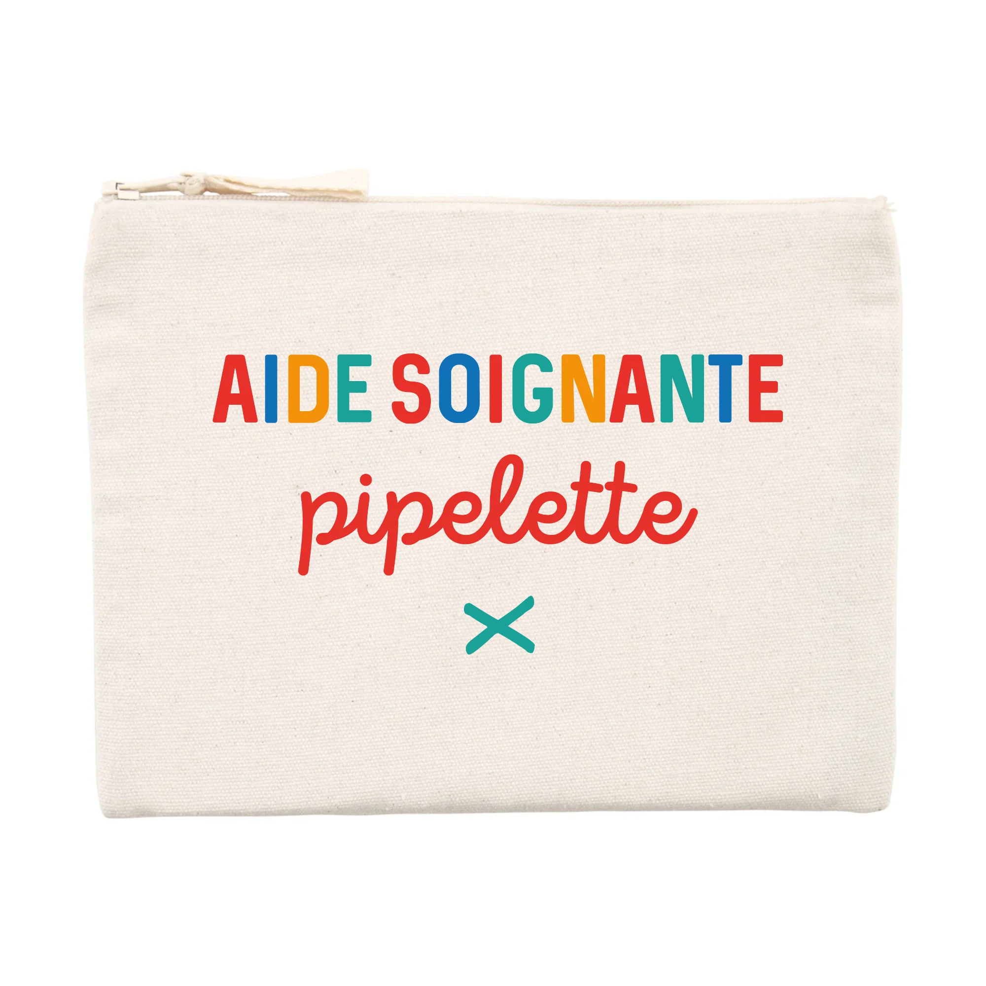 Une pochette d’excellente qualité Pochette 80% coton recyclé 🌱, 20% polyester recyclé Ouverture zippée Imaginée et imprimée en France Idée cadeau pour aide soignante Dimensions : 21.5 x 16 cm Lavable en machine, 30°C Peut servir de trousse, porte-monnaie ou trousse à maquillage