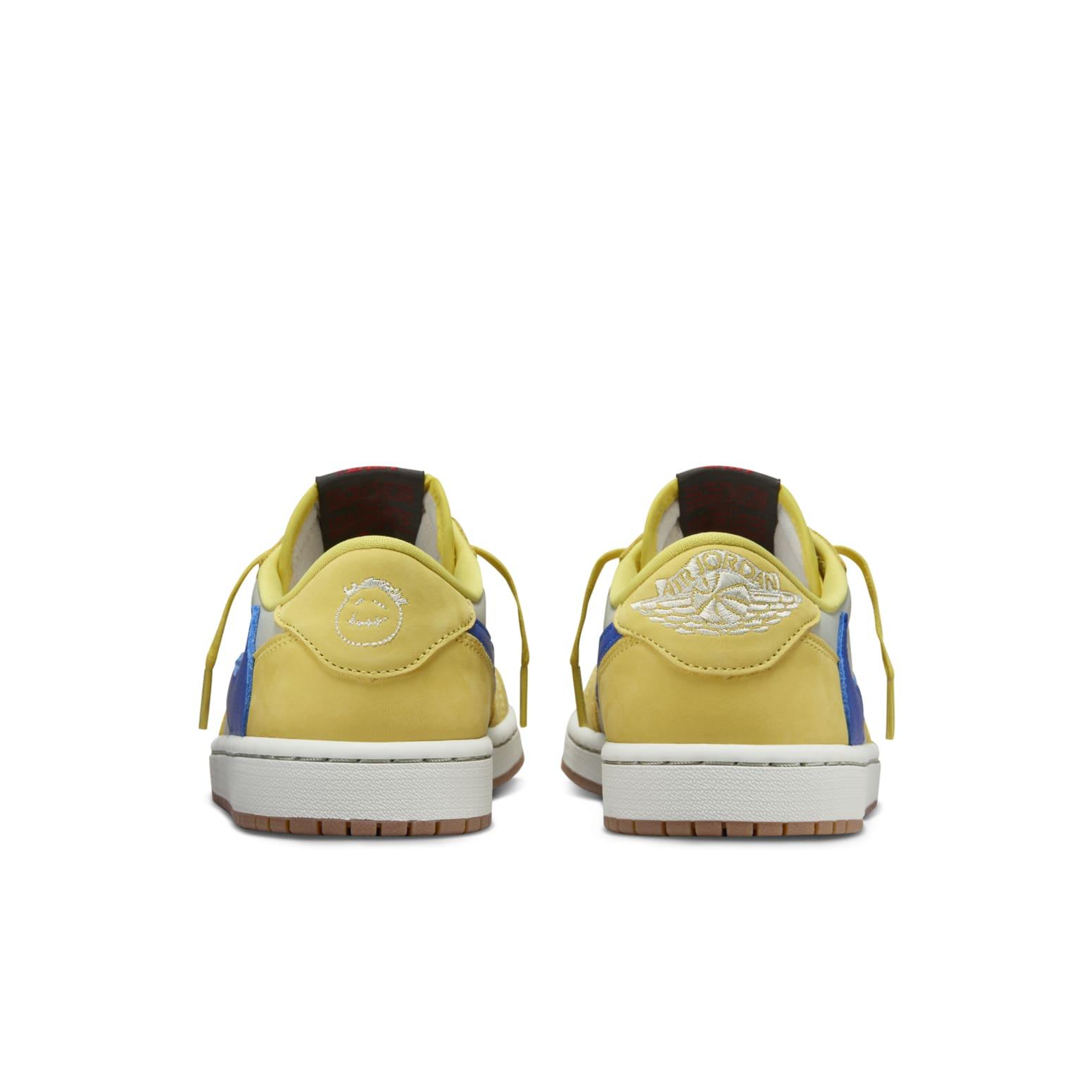 Les Air Jordan 1 Low OG x Travis Scott Canary se distinguent des précédents modèles par leur coloris jaune « Canary », alors que les autres collaborations utilisaient des teintes plus neutres comme le marron, le noir ou le bleu.