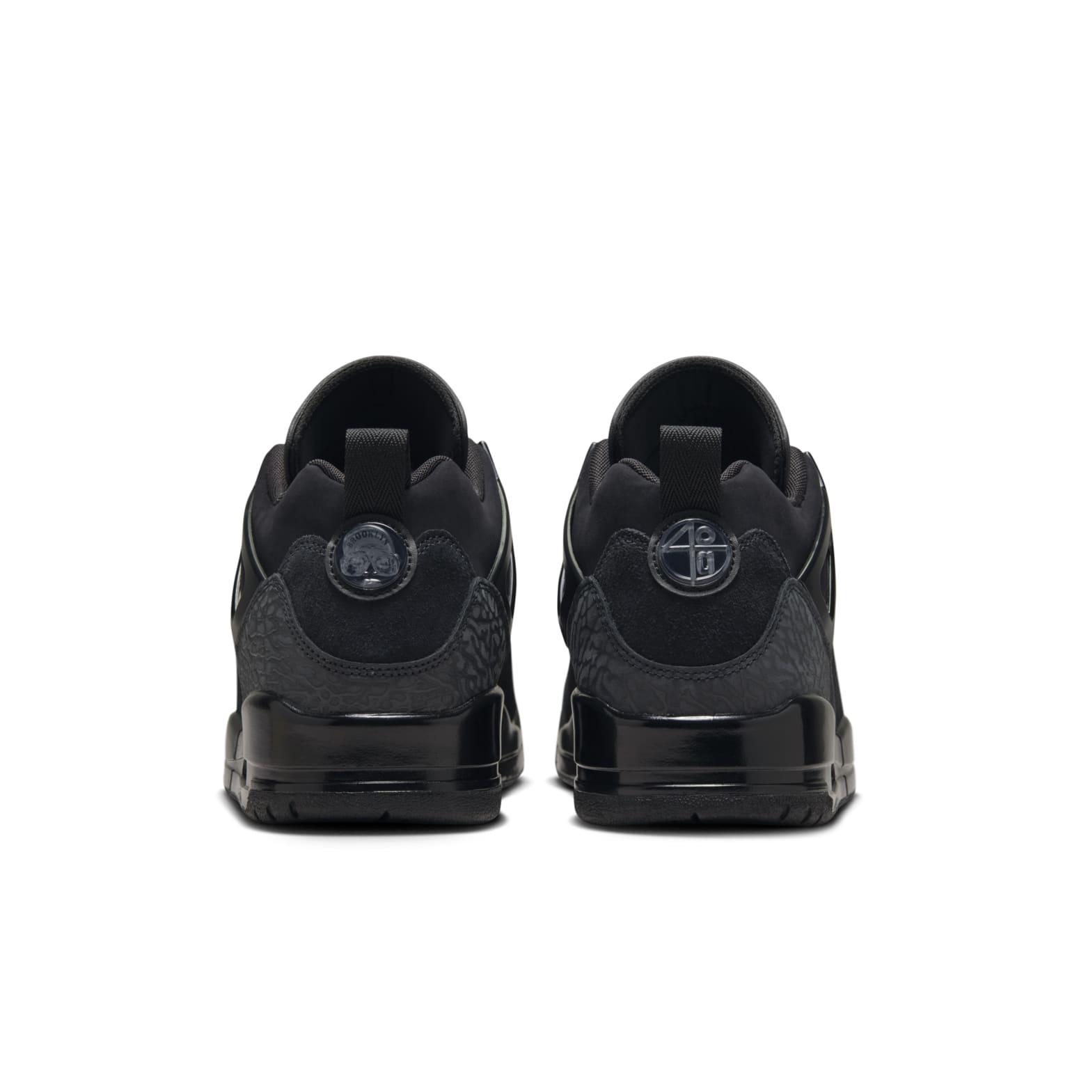 Les Air Jordan Spizike Low Black Cat s’inspirent de plusieurs modèles classiques, notamment l’Air Jordan 3 pour l’éléphant print, l’Air Jordan 4 pour les renforts latéraux et l’Air Jordan 6 pour les détails sur la languette.