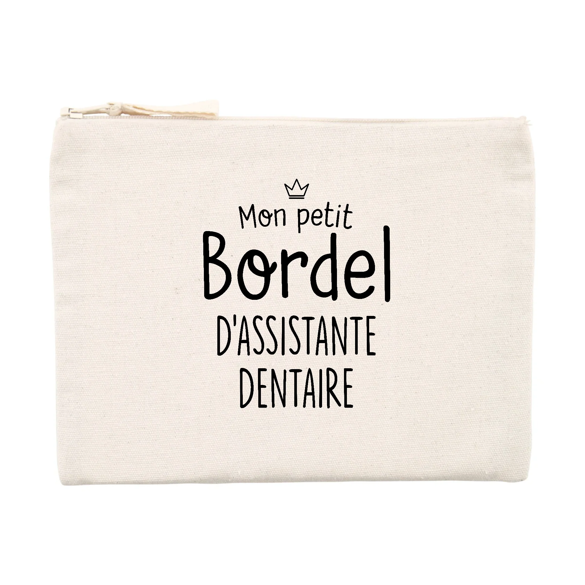 Une pochette d’excellente qualité Pochette 80% coton recyclé 🌱, 20% polyester recyclé Ouverture zippée Imaginée et imprimée en France Emballage cartonné recyclé et recyclable Pochette personnalisée pour assistante dentaire Dimensions : 21.5 x 16 cm Lavable en machine, 30°C Peut servir de trousse, porte-monnaie ou trousse à maquillage