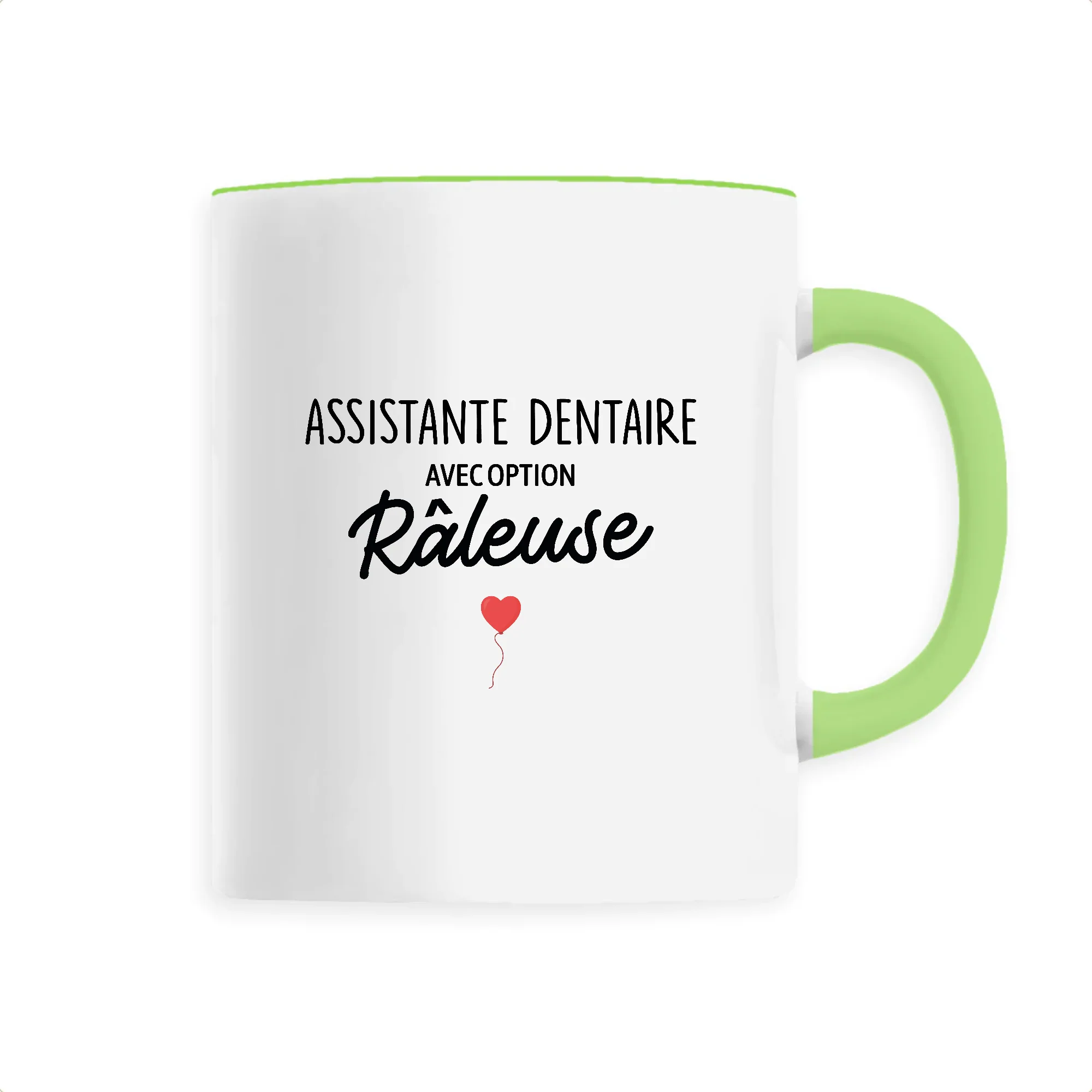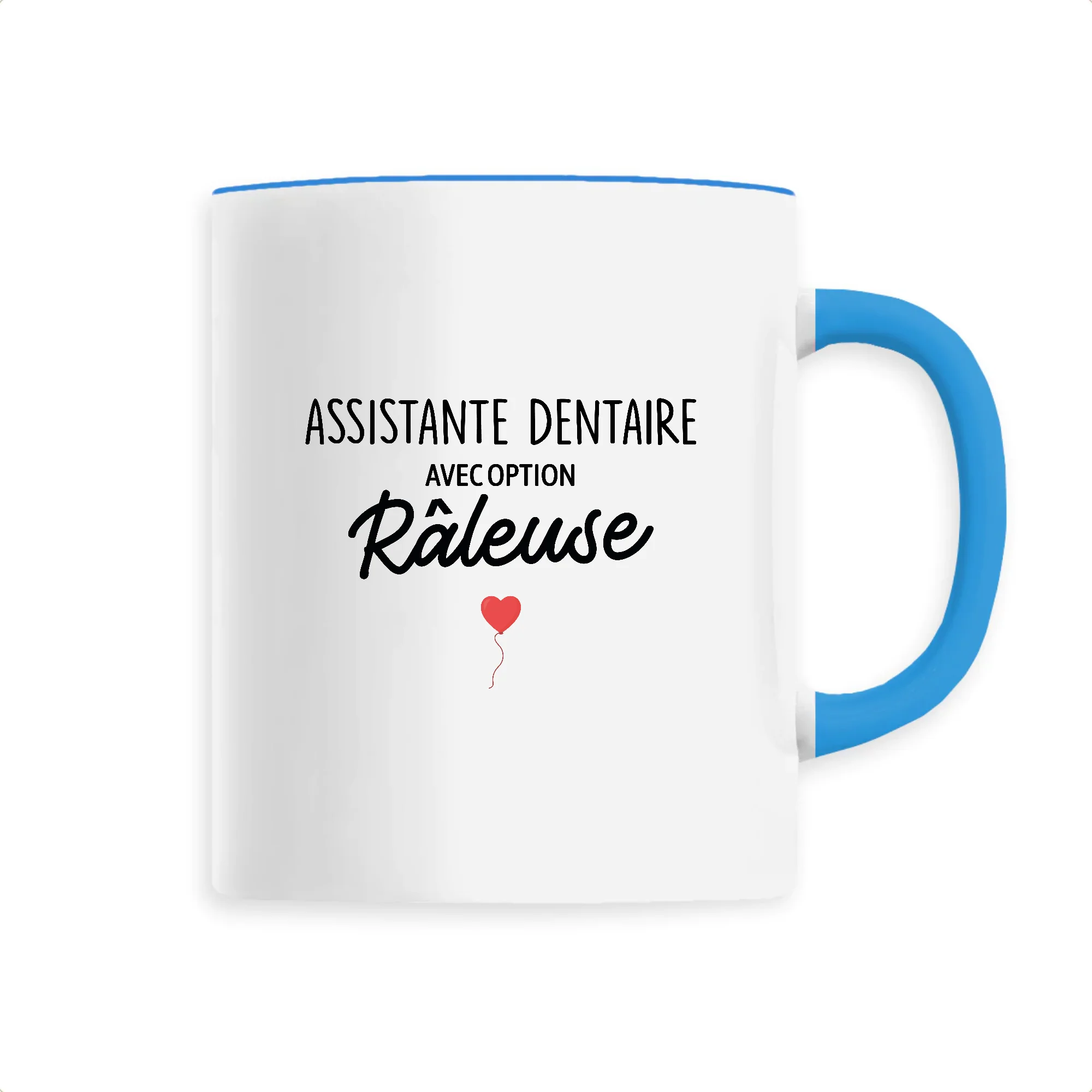 Mug personnalisé pour assistante dentaire raleuse Disponible en 6 coloris (bord du mug et anse assortis) Mug en céramique, résiste au micro-ondes Lavable au lave-vaisselle ou à la main Parfait pour la pause-café entre collègues Un cadeau original et de qualité Contenance : 330ml, hauteur 9,8cm Revêtement blanc pur et finition parfaite Impression : quadrichromie […]