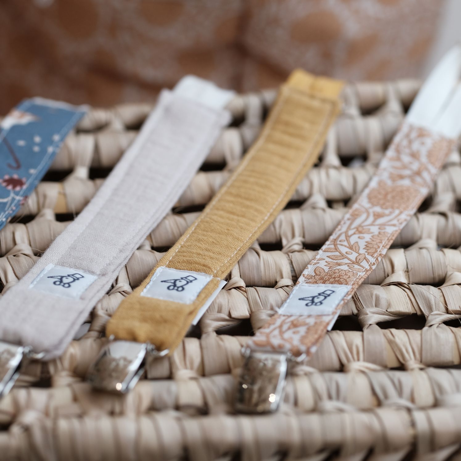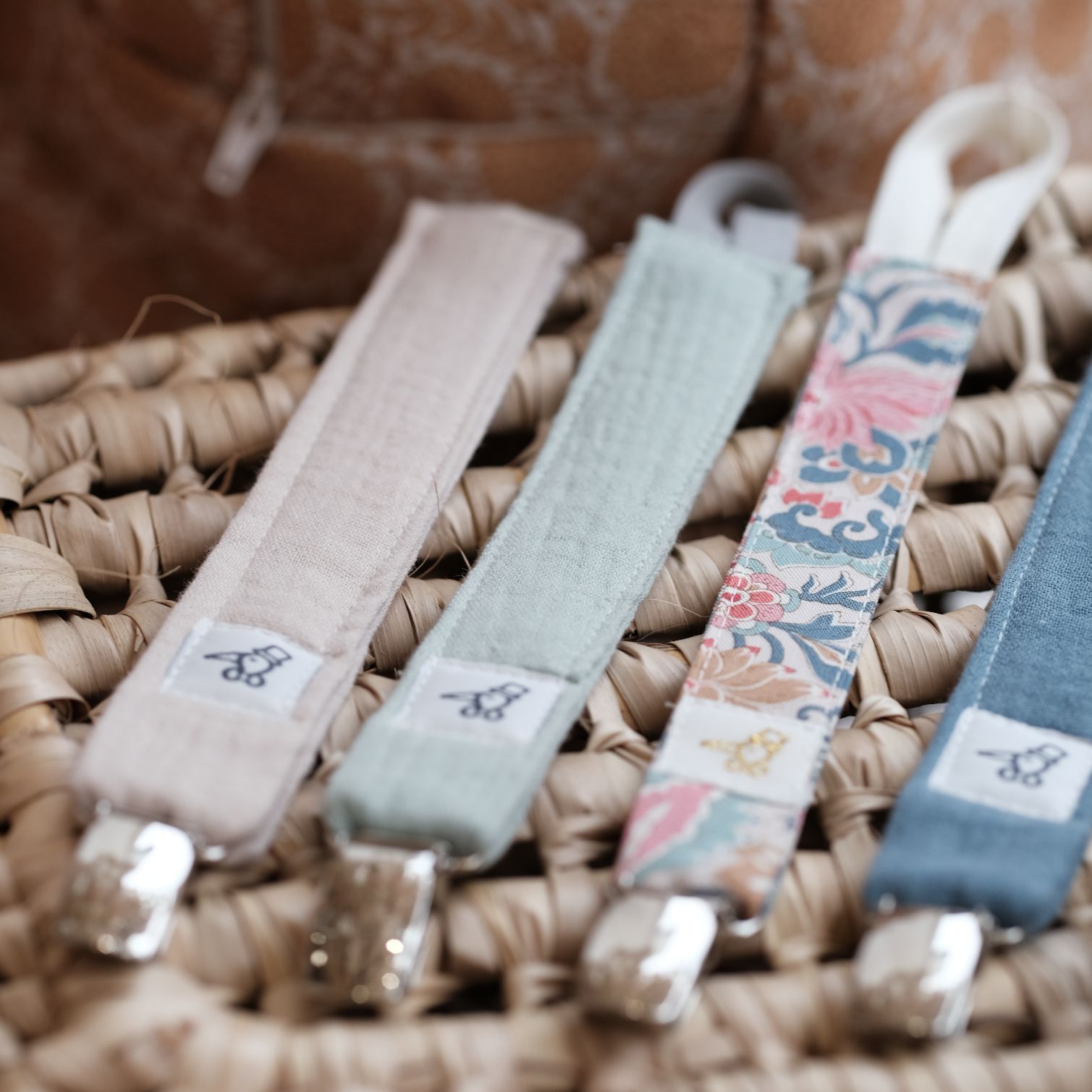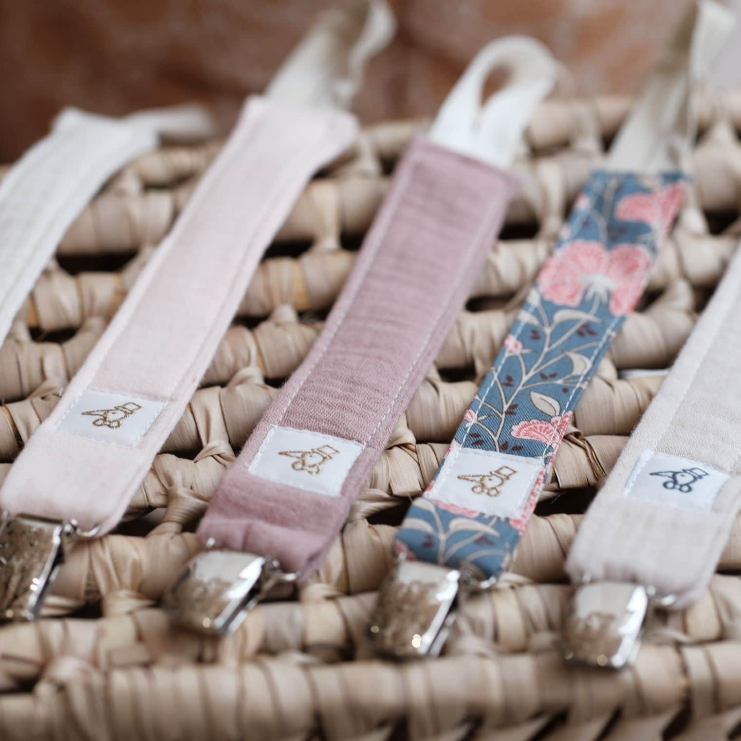 | Attache tétine simple | Anémone, Argile, Artic, Aurore, Blanc, Camélia, Colombine, Elena, Elsa, Gold poppy, Gris, Liv, Maho, Milo blue, Milo camel, Moana, Moutarde, Neptune, Nino, Quartz, Roméo, Rose poudrée, Sable, Storm, Vieux rose, Wendy walk, Yoko |