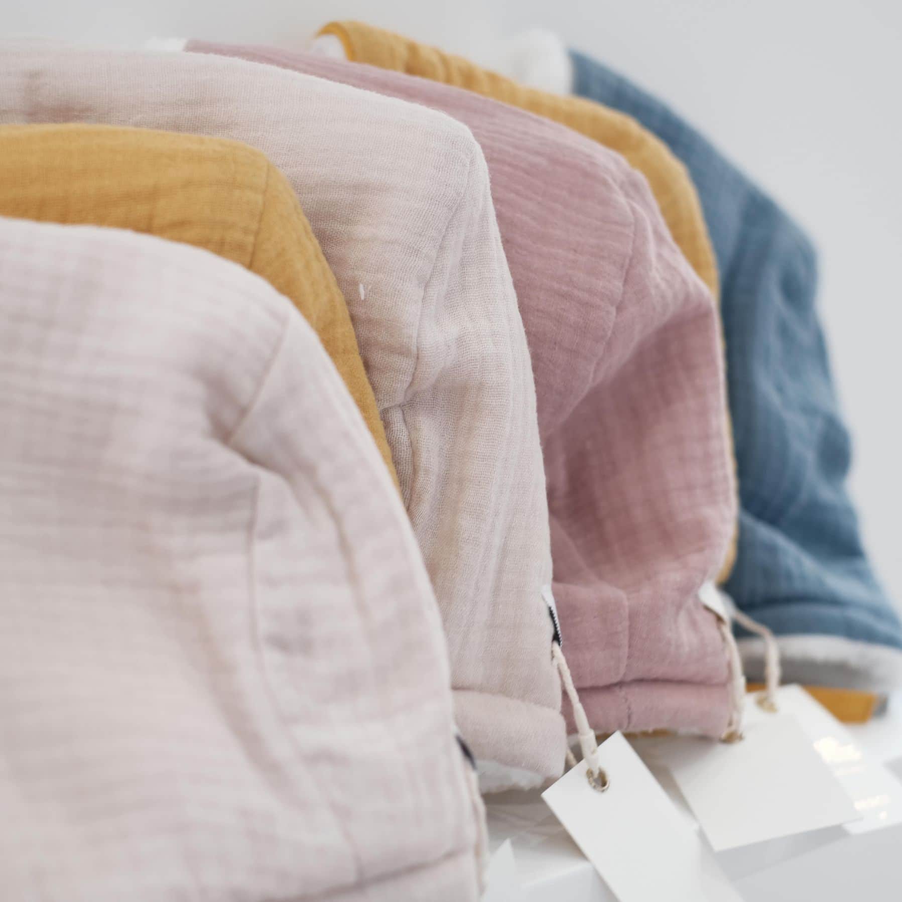 Retrouvez aussi notre version plus légère entièrement en double gaze de coton Bio, le Béguin double gaze de coton Bio.