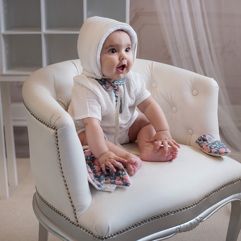 Décliné sous plusieurs coloris unis, rose poudré, artic, quartz …. C’est le cadeau de naissance idéal pour votre bout’chou.
