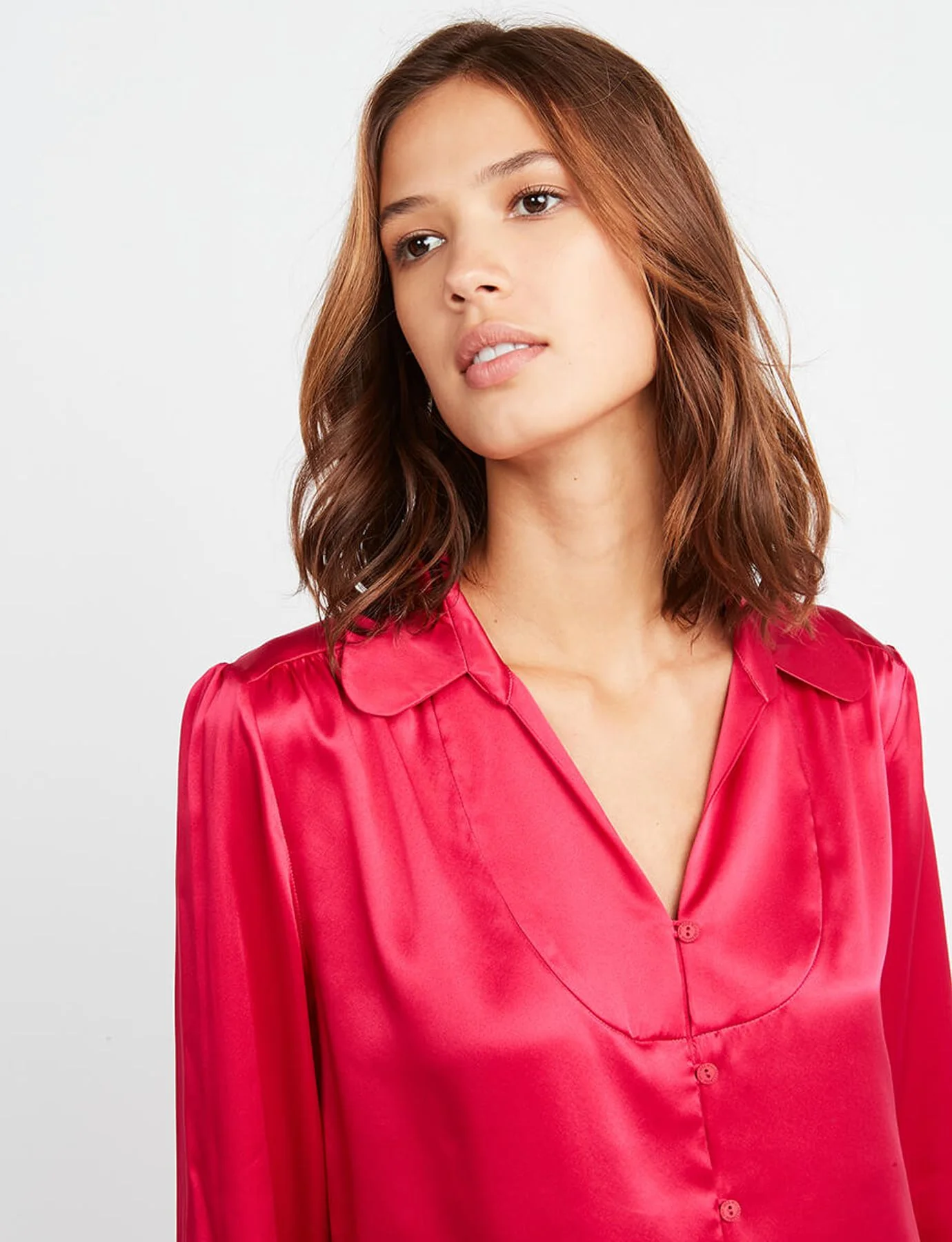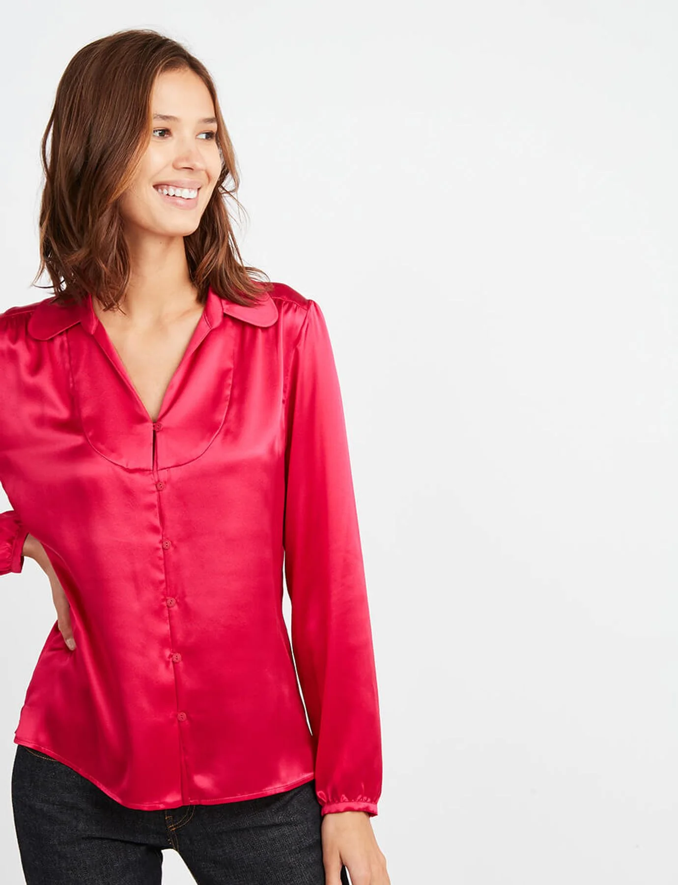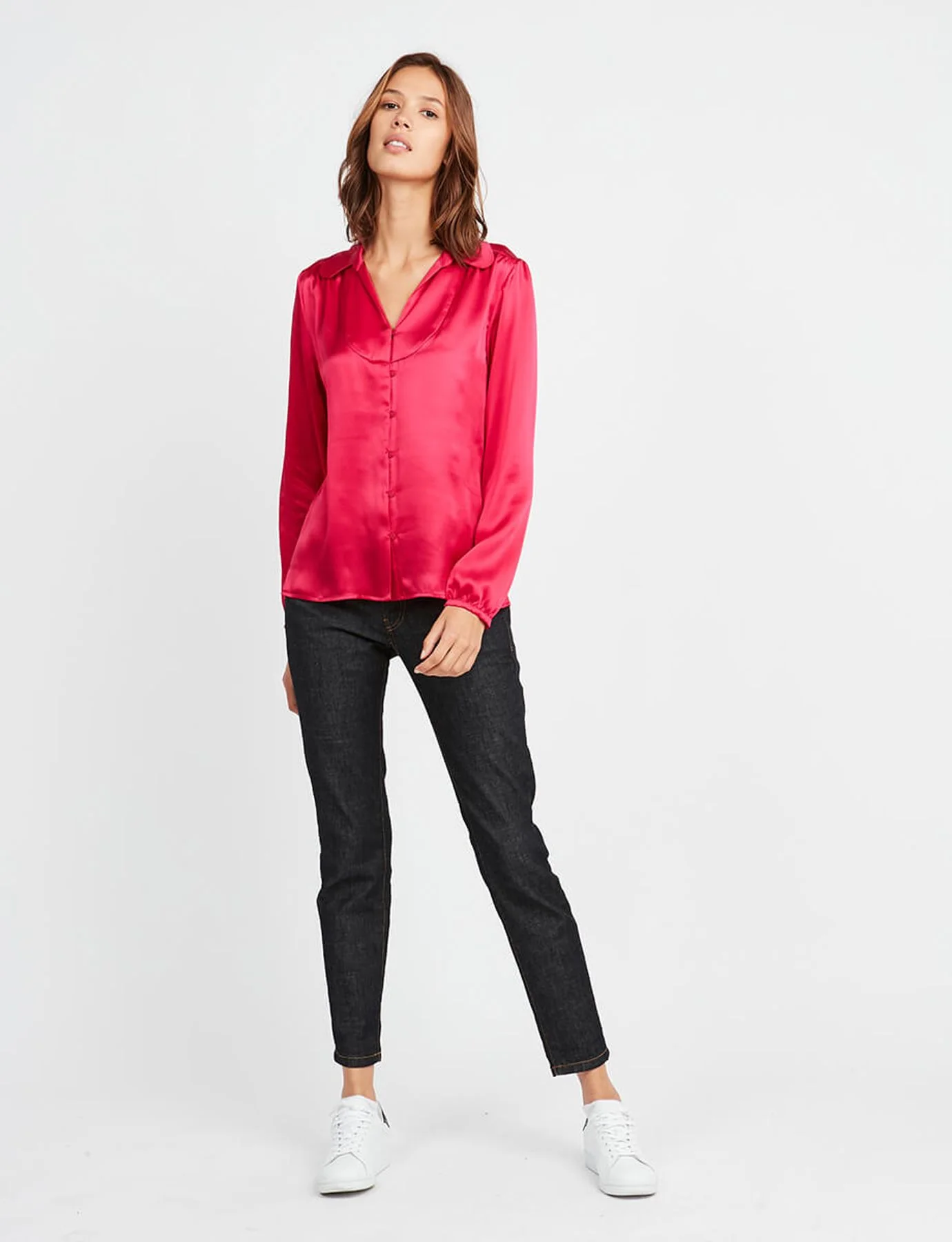Optez pour la couleur cet automne-hiver avec notre blouse Aurora en soie rose. Avec un jean slim ou évasé, sa forme s’adaptera à toutes vos tenues. Cette blouse restera un indémodable de votre garde-robe.