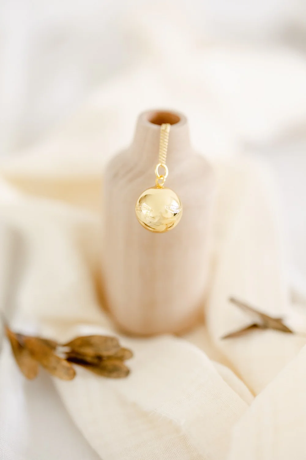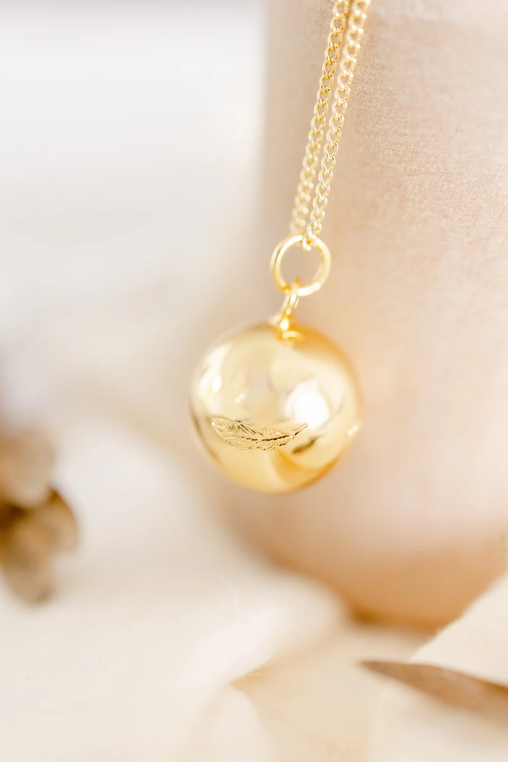 La sphère de notre bola de grossesse Caresse recouverte d’or 18 carats ou d’argent dévoile ses délicates plumes enchanteresses. Elles rappellent le nid, doux cocon enveloppant où s’accordent chaleur et tendresse. Une tendre création sonore imaginée avec cœur pour vous accompagner dans ce précieux moment de vie qu’est la maternité et bien au-delà.