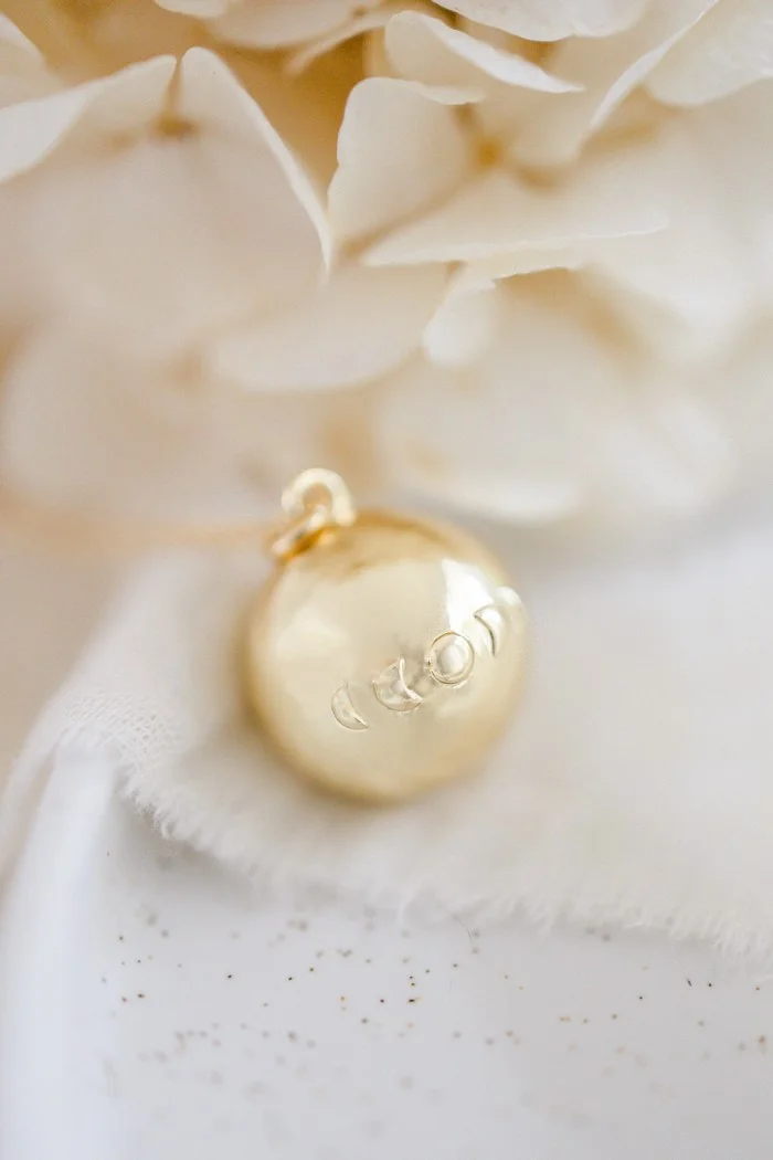 Notre bola de grossesse Astre recouvert d’or 18 carats ou d’argent arbore un délicat cycle lunaire. Il symbolise la maternité et son aspect cyclique. C’est ainsi à la Lune, mais également à la Femme et au lien indéfectible qu’elles entretiennent l’une et l’autre que je souhaitais rendre hommage à travers cette douce création sonore.