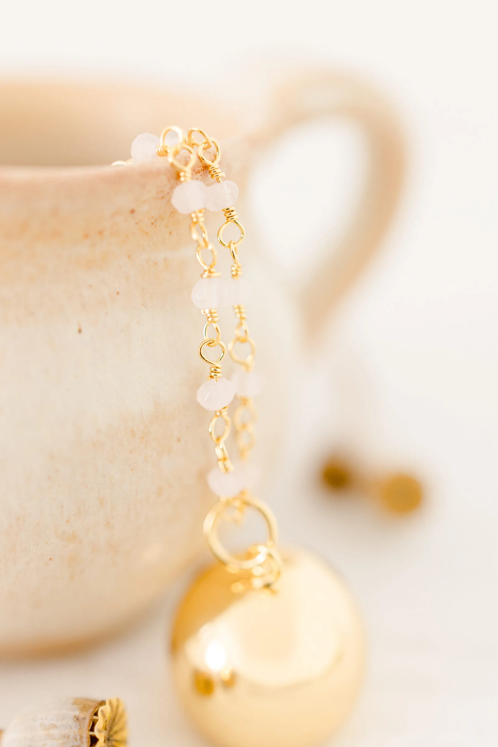 Délicatement suspendu à sa chaîne ornée de pierres naturelles de quartz rose, ce bola de grossesse diffuse son énergie douce et maternelle. D’un rose tendre aux douces nuances, le quartz rose, pierre du coeur, inspire le calme et la tendresse. Une tendre création sonore symbole de cet amour indéfectible qui vous unit à votre bébé.