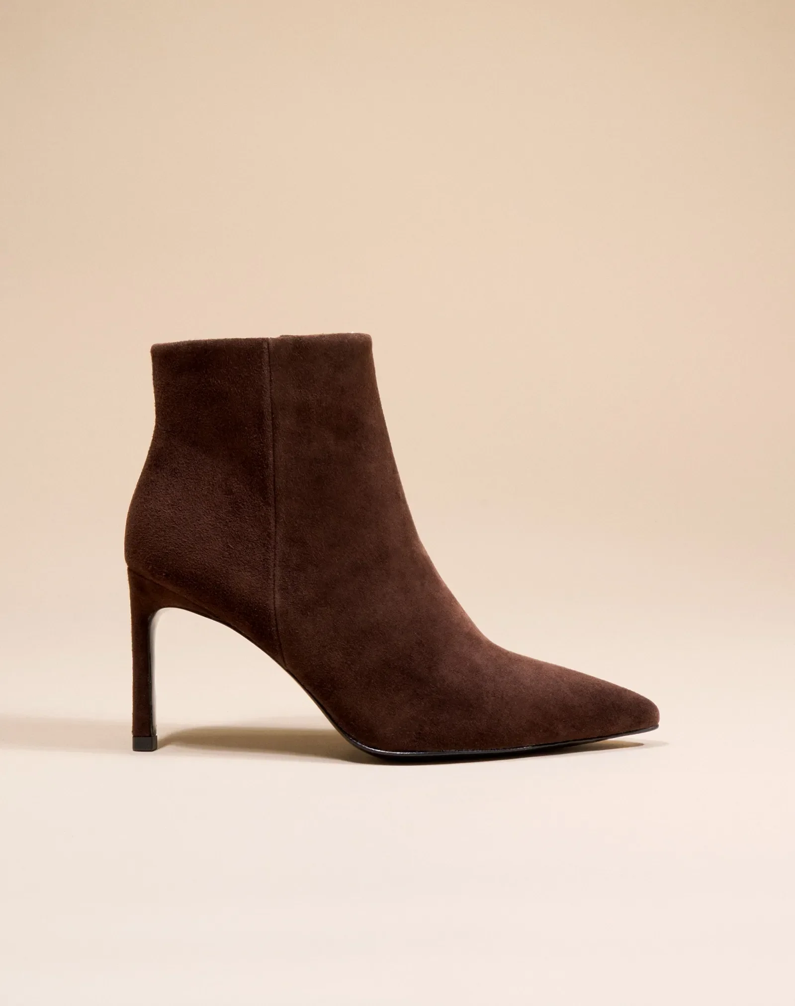 Les bottines Noura Kaki Suede incarnent l’élégance intemporelle avec une touche naturelle et moderne. Confectionnées en suède kaki doux et raffiné, elles se distinguent par leur bout pointu délicat et leur talon de 6 cm, pensé pour élancer la silhouette tout en garantissant confort et stabilité.