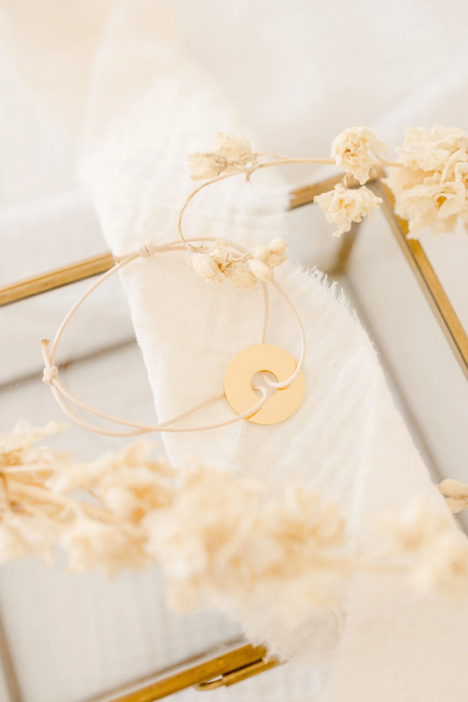 Bracelet personnalisé cordon de soie tressé médaille perlée or ÉPURE