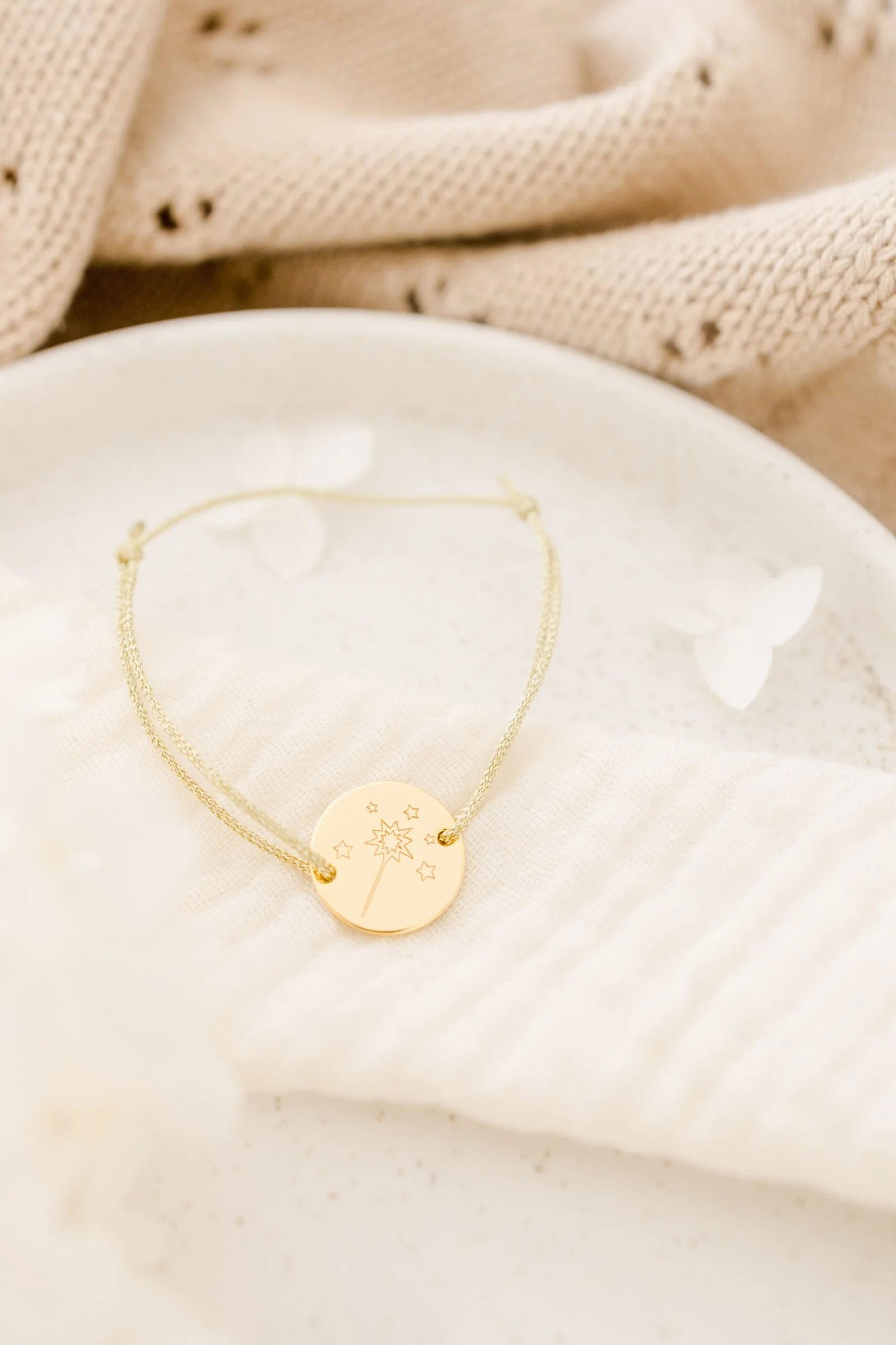 Bracelet personnalisé cordon enfant médaille ronde gravée BAGUETTE MAGIQUE