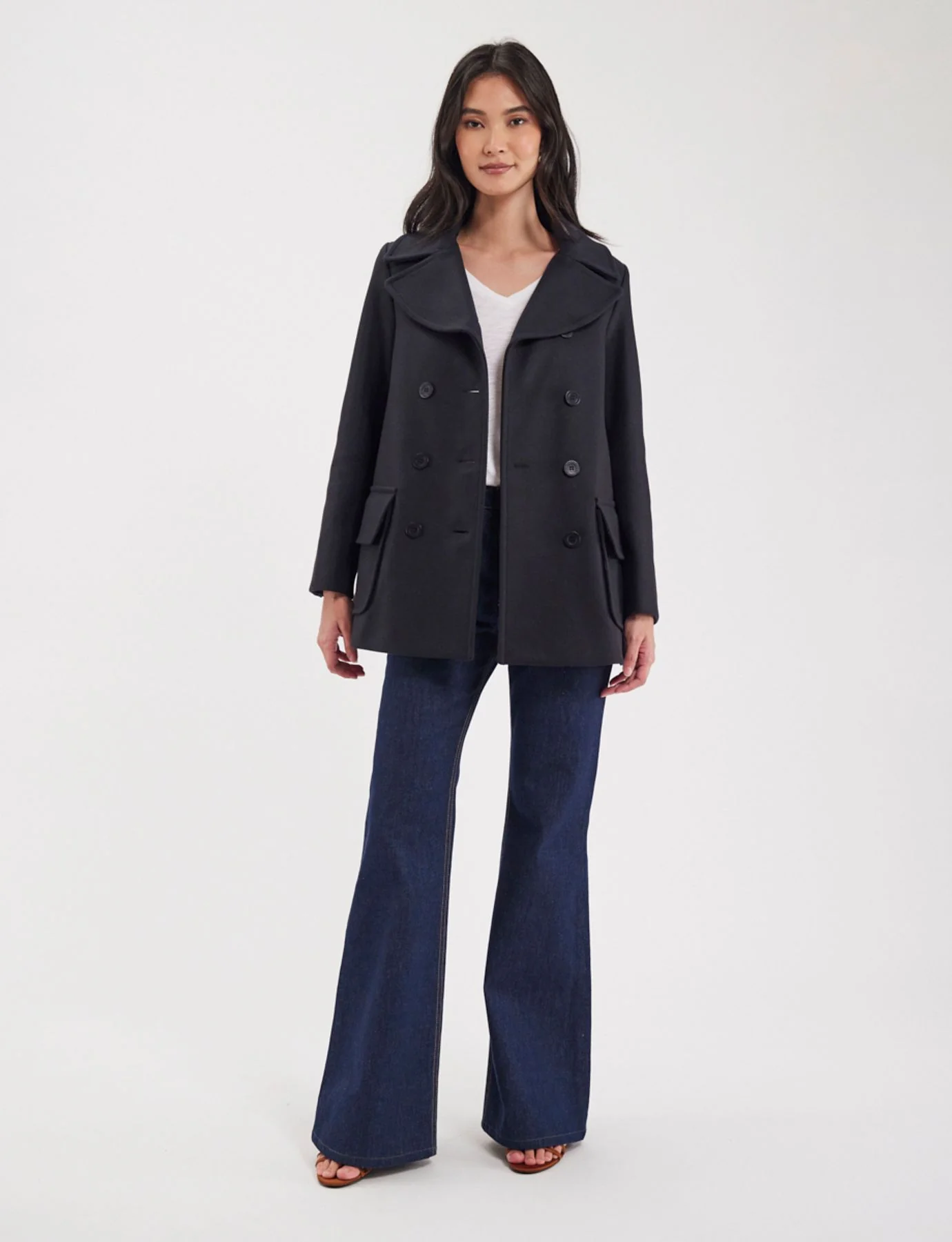 Le manteau Séraphine bleu foncé est LE caban classique que toute Parisienne doit posséder, facile à porter il est toujours chic et peut se porter avec…tout, vous adorerez son élégance intemporelle et sa praticité pour tous les jours ! Sa matière épaisse et lourde vous tiendra chaud tout l’hiver.