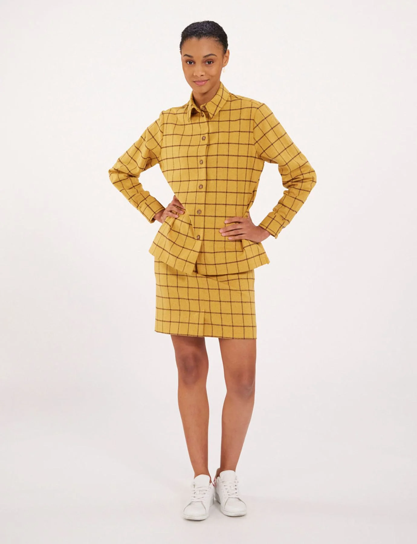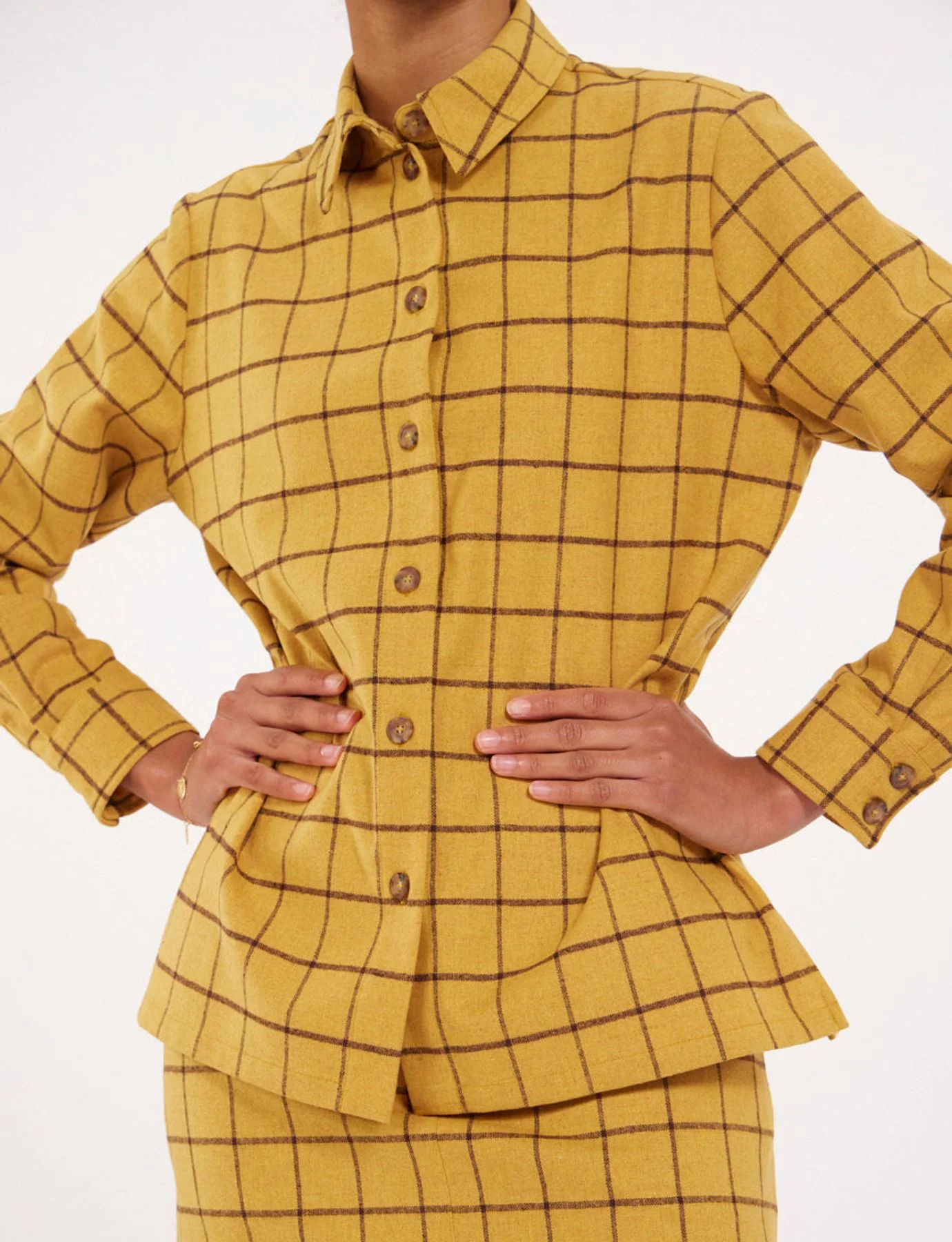 La chemise Cassia , dérivée des chemises d’hommes dont Ines s’est toujours inspirée, est déjà un succès mondial. Très agréable à porter, sa version ocre à carreaux marrons vous donnera à elle seule un look irrésistible. Vous pourrez la porter seule ou en sur-chemise et aurez le plaisir de pouvoir l’utiliser de différentes manières, selon vos envies. Boutonnage avant avec boutons corne
