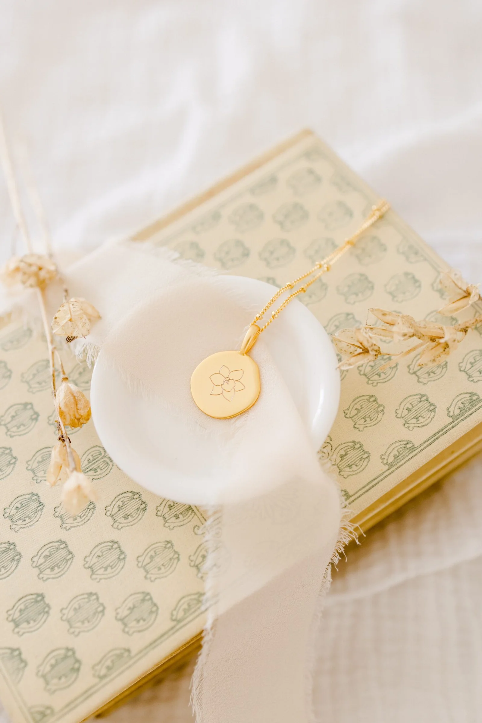 Collier fleur de naissance personnalisable médaille moon ECLOSION