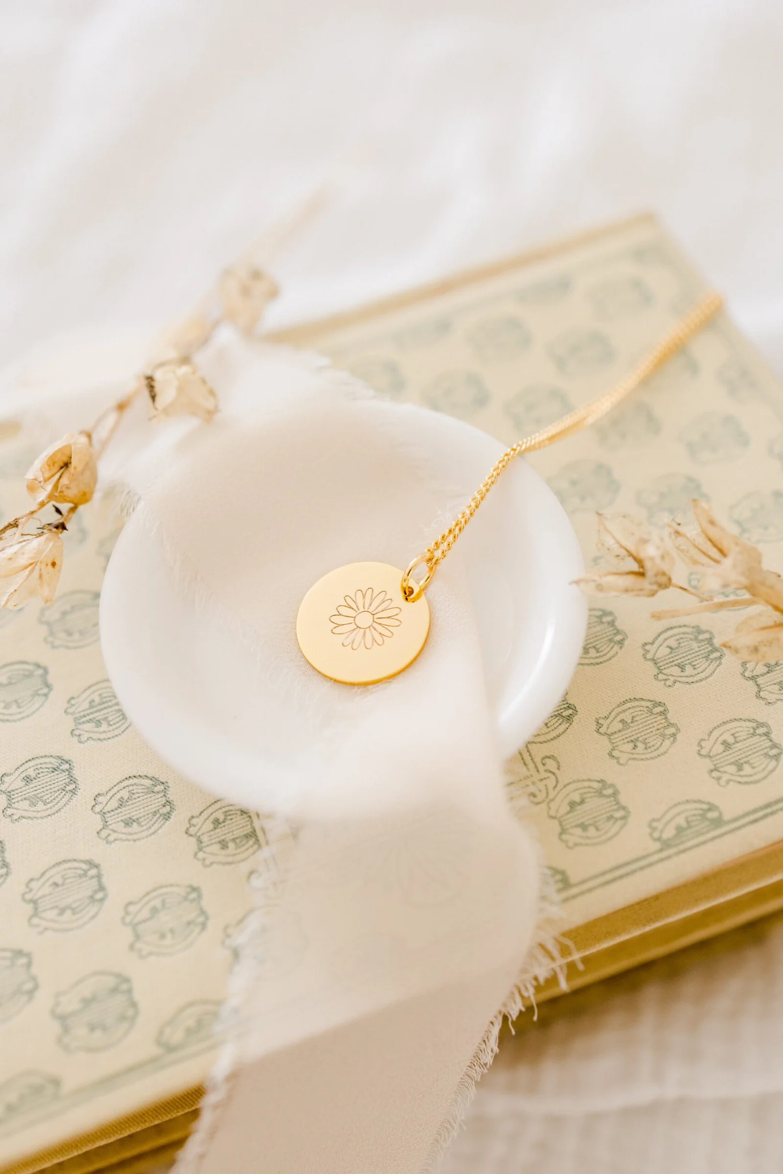 Collier fleur de naissance personnalisable médaille ronde ECLOSION