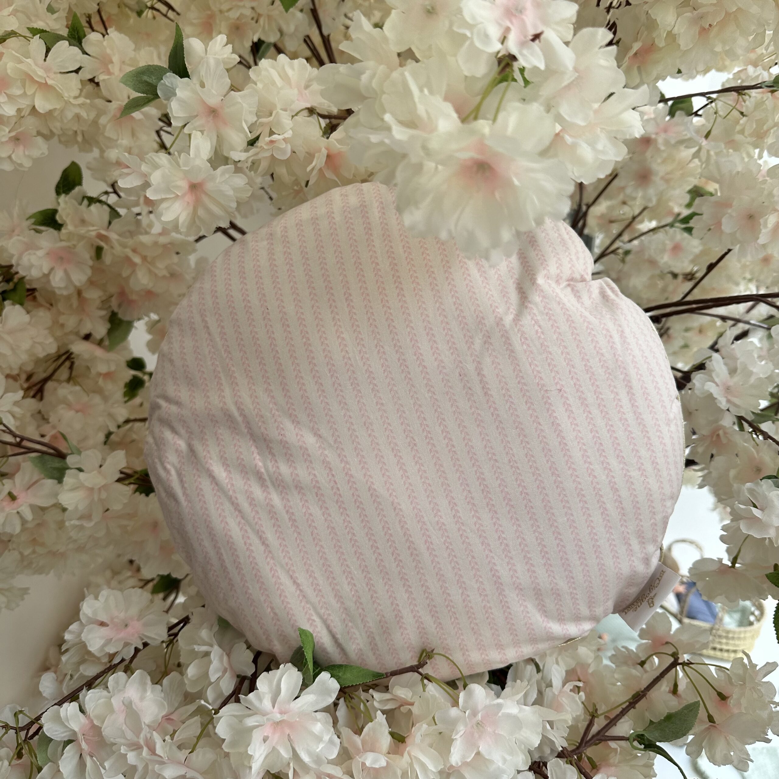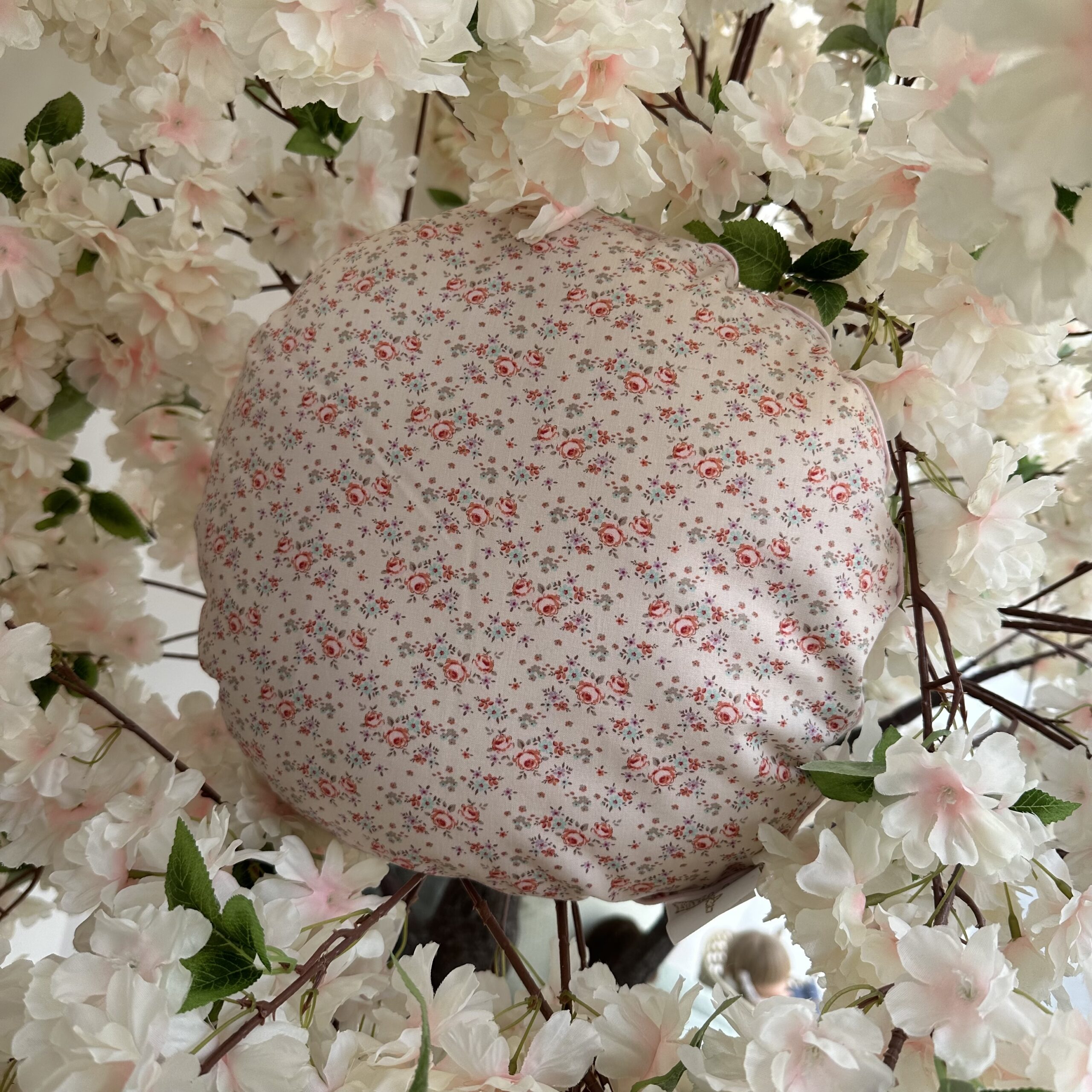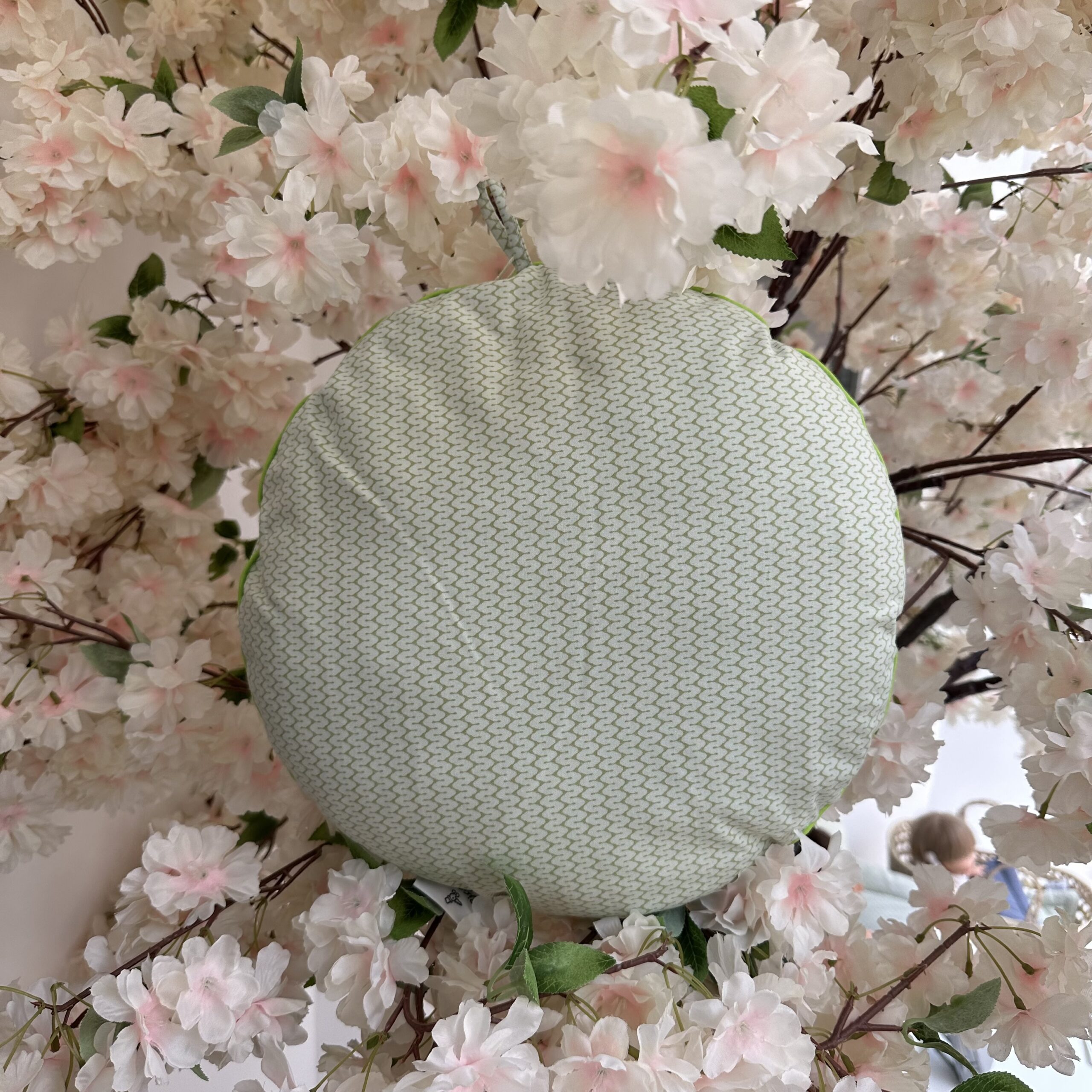Un coussin rond ou rectangulaire bien moelleux qui trouvera sa place au pied du lit de bébé ou sur le rocking-chair de la chambre, un joli passepoil vient faire ressortir le tissu imprimé.