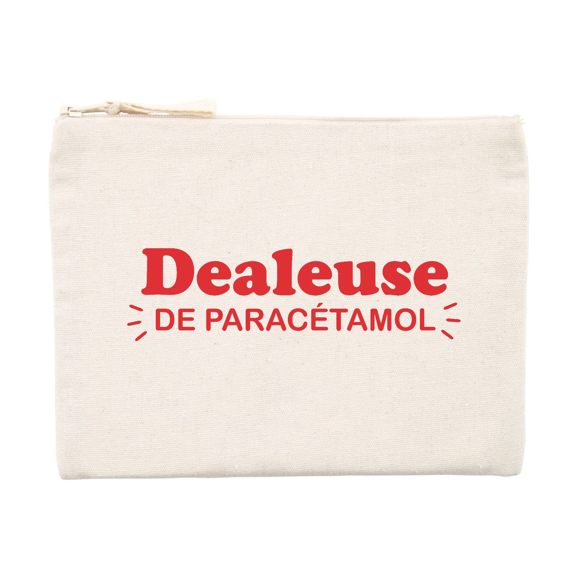 Cadeau idéal pour dealeuse de paracétamol Dimensions : 21.5 x 16 cm Motif personnalisé pour infirmière Peut servir de trousse, porte-monnaie ou trousse à maquillage Une jolie trousse d’excellente qualité Trousse 80% coton recyclé 🌱, 20% polyester recyclé Ouverture zippée Imaginée et imprimée en France Lavable en machine, 30°C