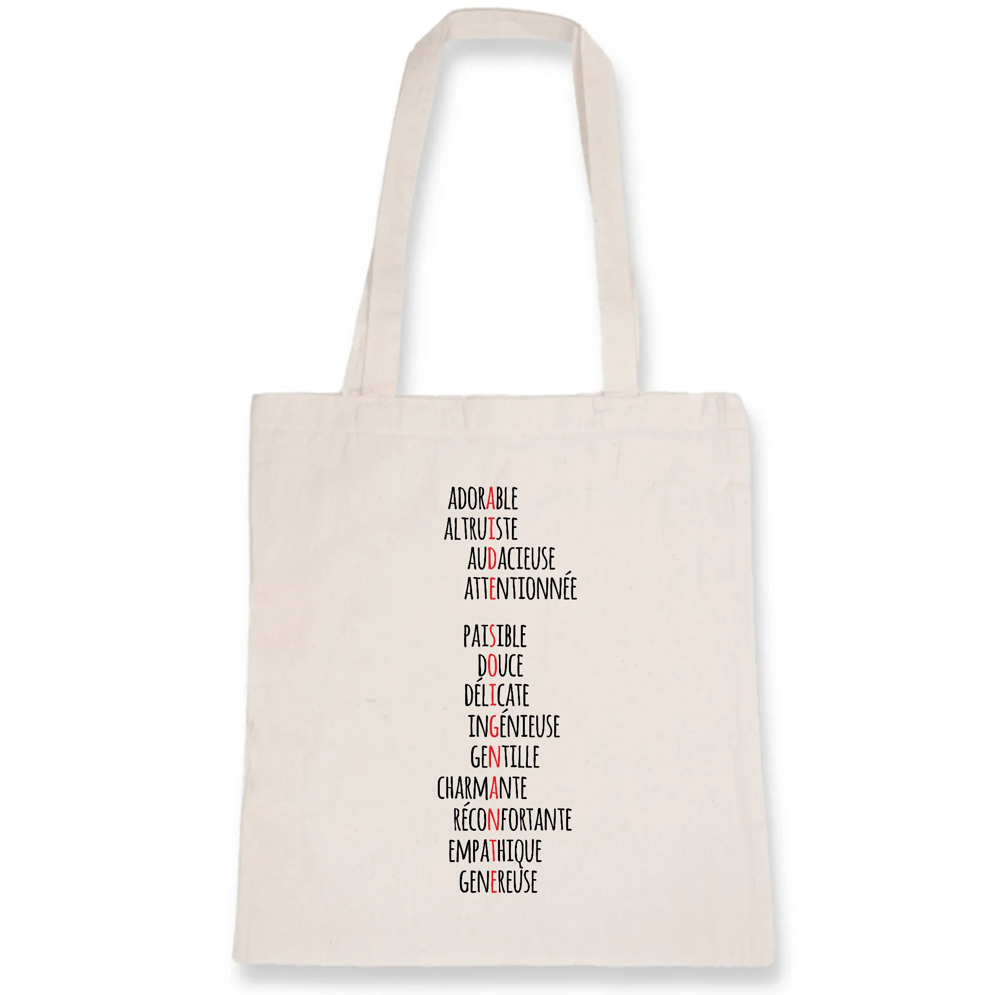 Un tote bag 100% écologique Sac en toile souple et résistant 100% coton biologique 🌱 Teinture écologique et durable Lavable en machine à 30°C Cadeau personnalisé aide soignante Poignée longue (70 cm) Dimensions : 38 x 42 cm Point croix à la poignée pour plus de maintien Personnalisé et imprimé en France