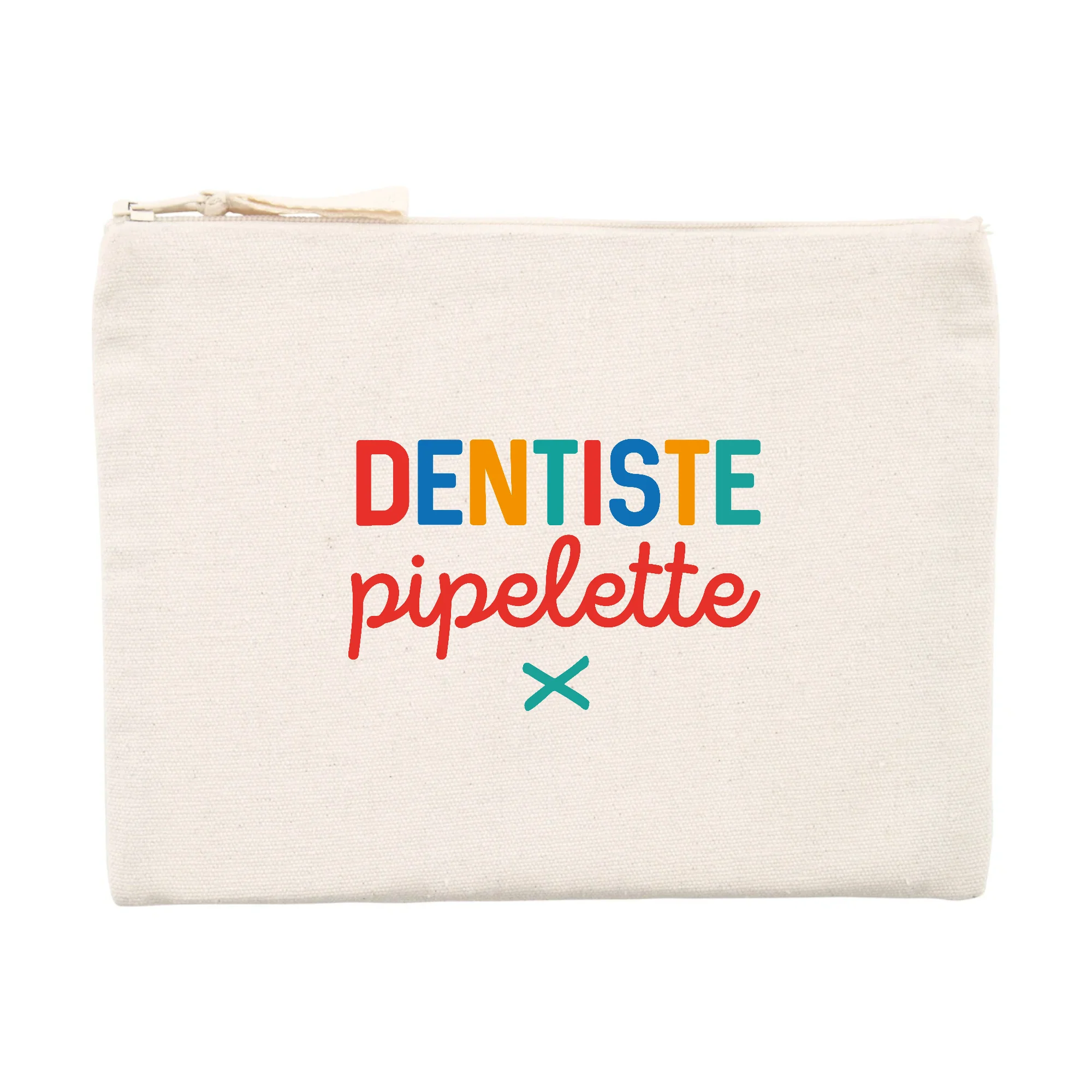 Une pochette d’excellente qualité Pochette 80% coton recyclé 🌱, 20% polyester recyclé Ouverture zippée Imaginée et imprimée en France Emballage cartonné recyclé et recyclable Pochette personnalisée pour dentiste pipelette Dimensions : 21.5 x 16 cm Lavable en machine, 30°C Peut servir de trousse, porte-monnaie ou trousse à maquillage