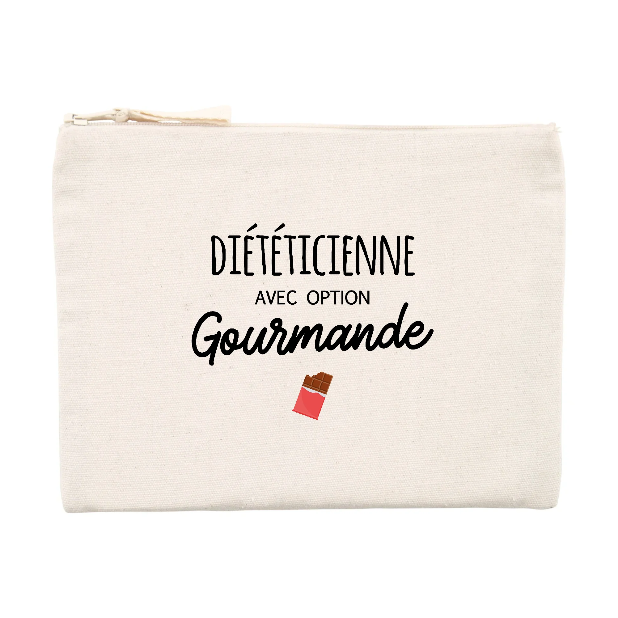 Une pochette d’excellente qualité Pochette 80% coton recyclé 🌱, 20% polyester recyclé Ouverture zippée Imaginée et imprimée en France Emballage cartonné recyclé et recyclable Idée cadeau pour dieteticienne Dimensions : 21.5 x 16 cm Lavable en machine, 30°C Peut servir de trousse, porte-monnaie ou trousse à maquillage