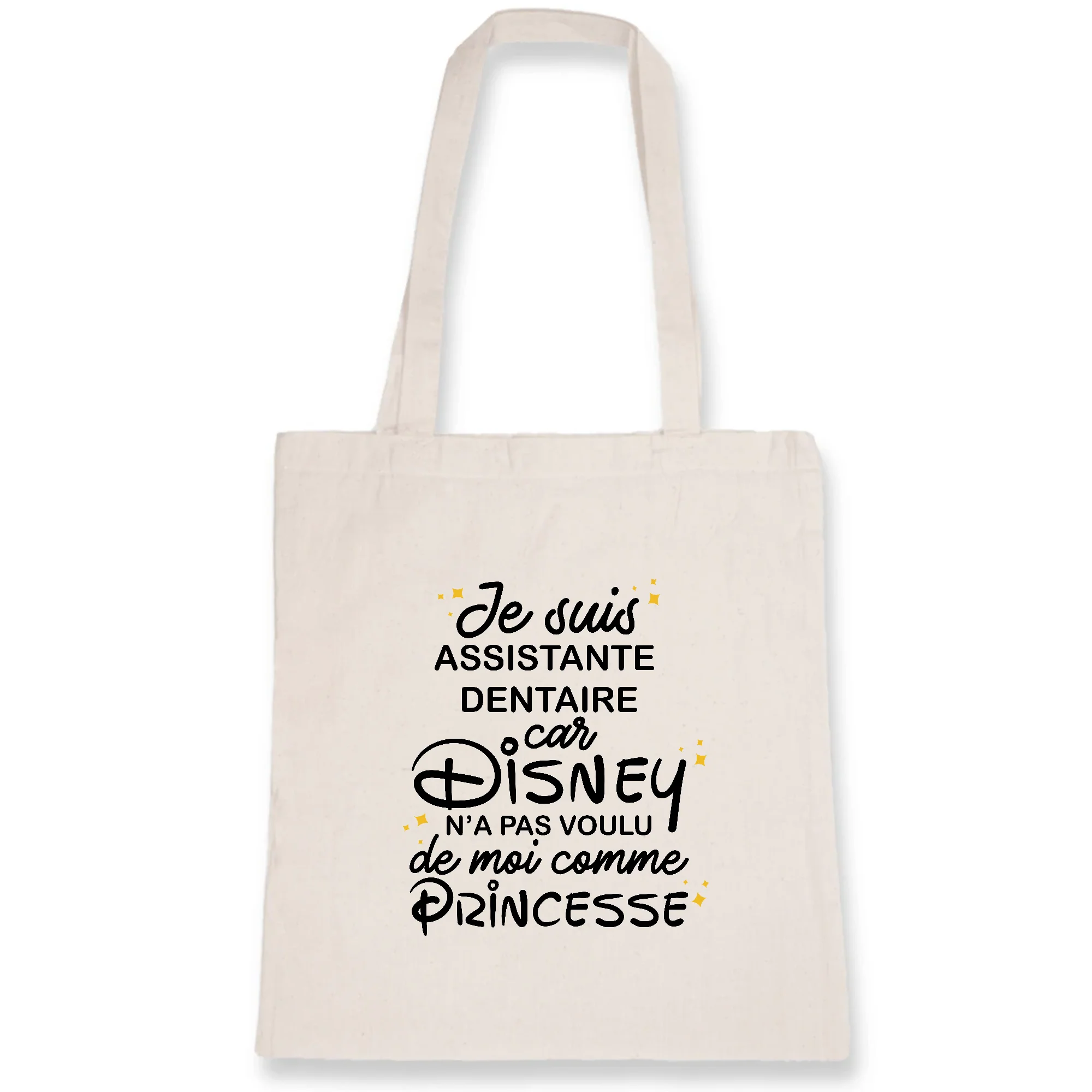 Un tote bag 100% écologique Sac en toile souple et résistant 100% coton biologique 🌱 Teinture écologique et durable Lavable en machine à 30°C Cadeau pour assistante dentaire à Disney Poignée longue (70 cm) Dimensions : 38 x 42 cm Point croix à la poignée pour plus de maintien Personnalisé et imprimé en France