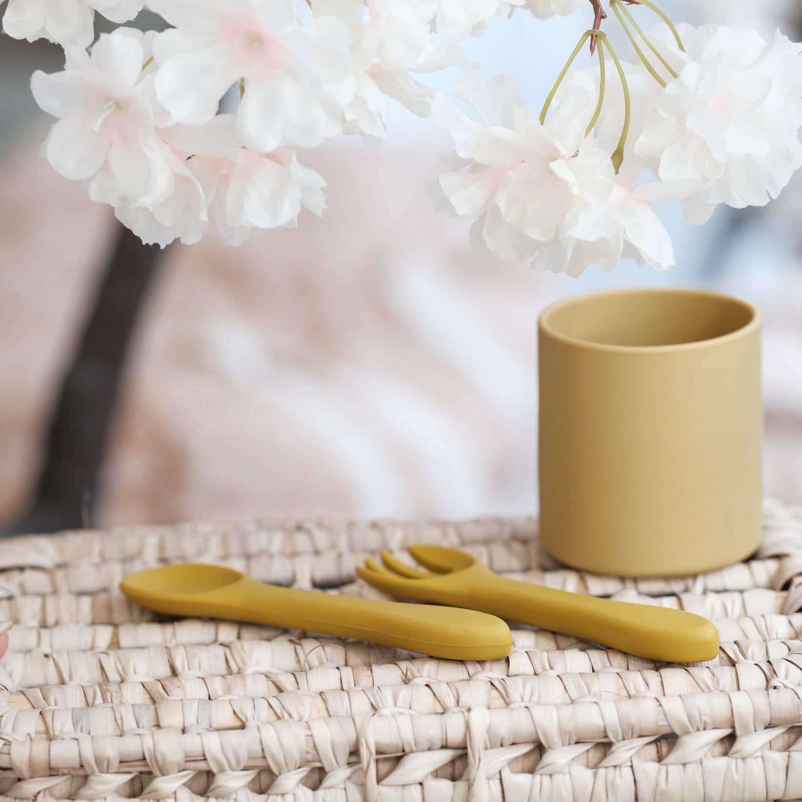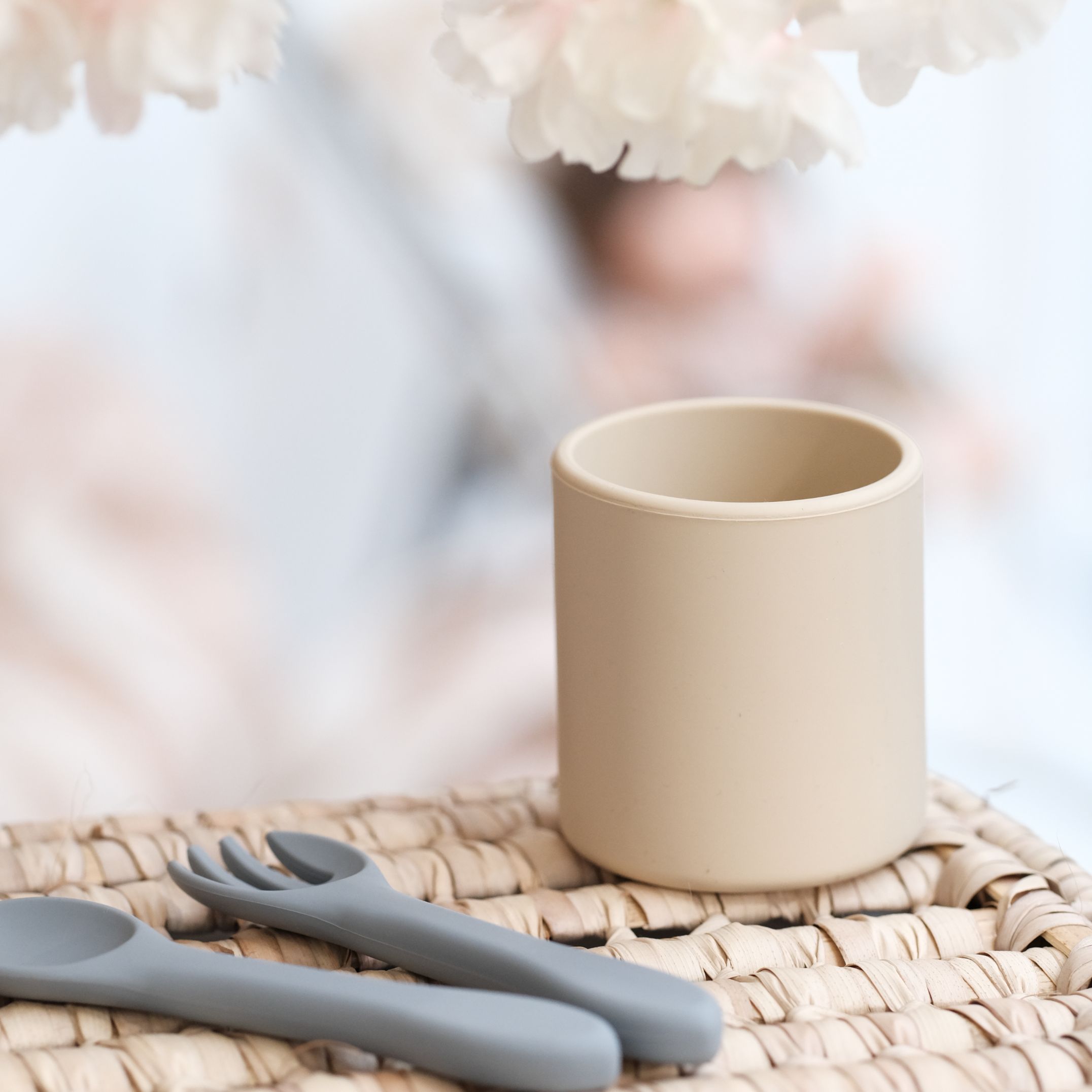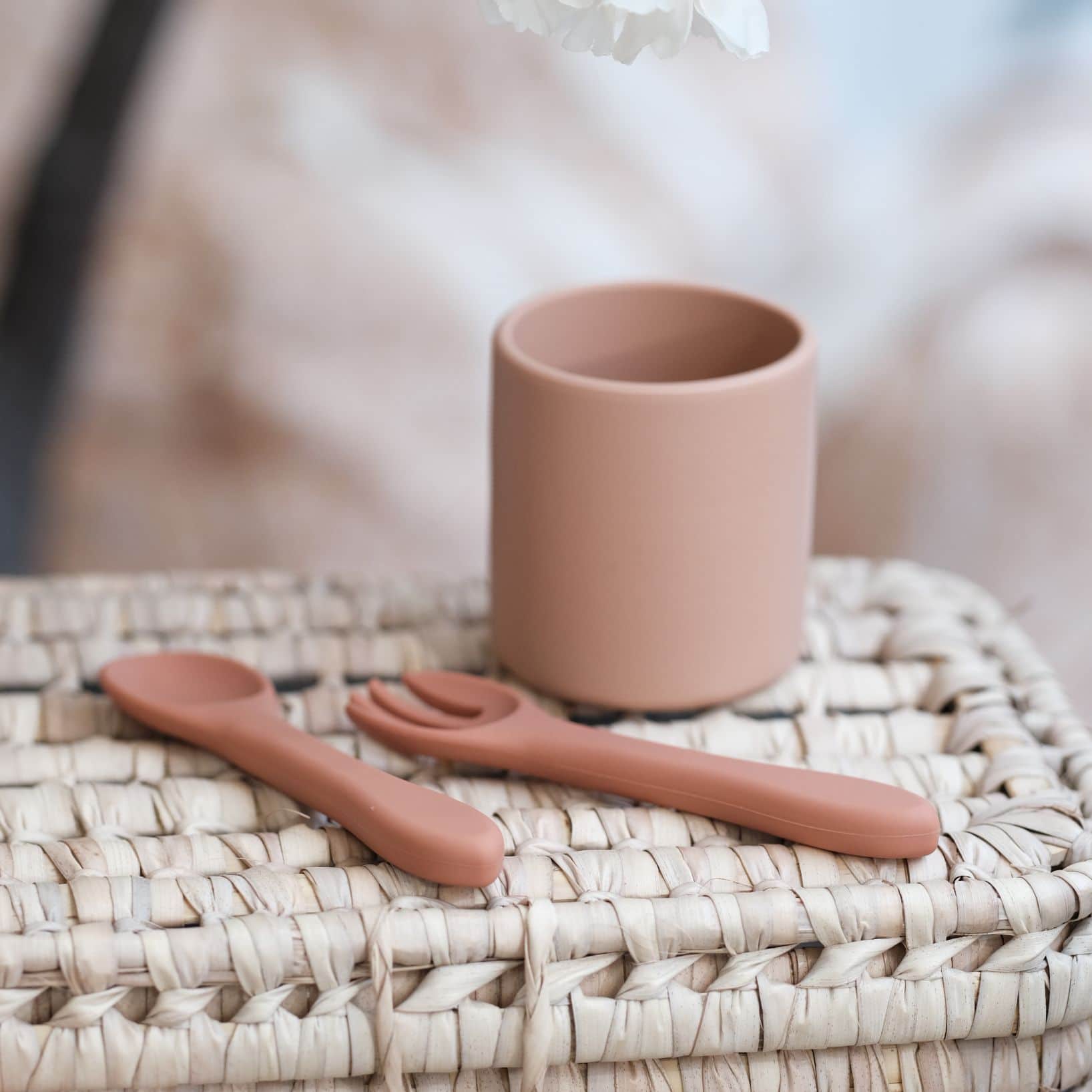 Pour compléter avec le gobelet, nous vous conseillons le bol ourson et les couverts en silicone.