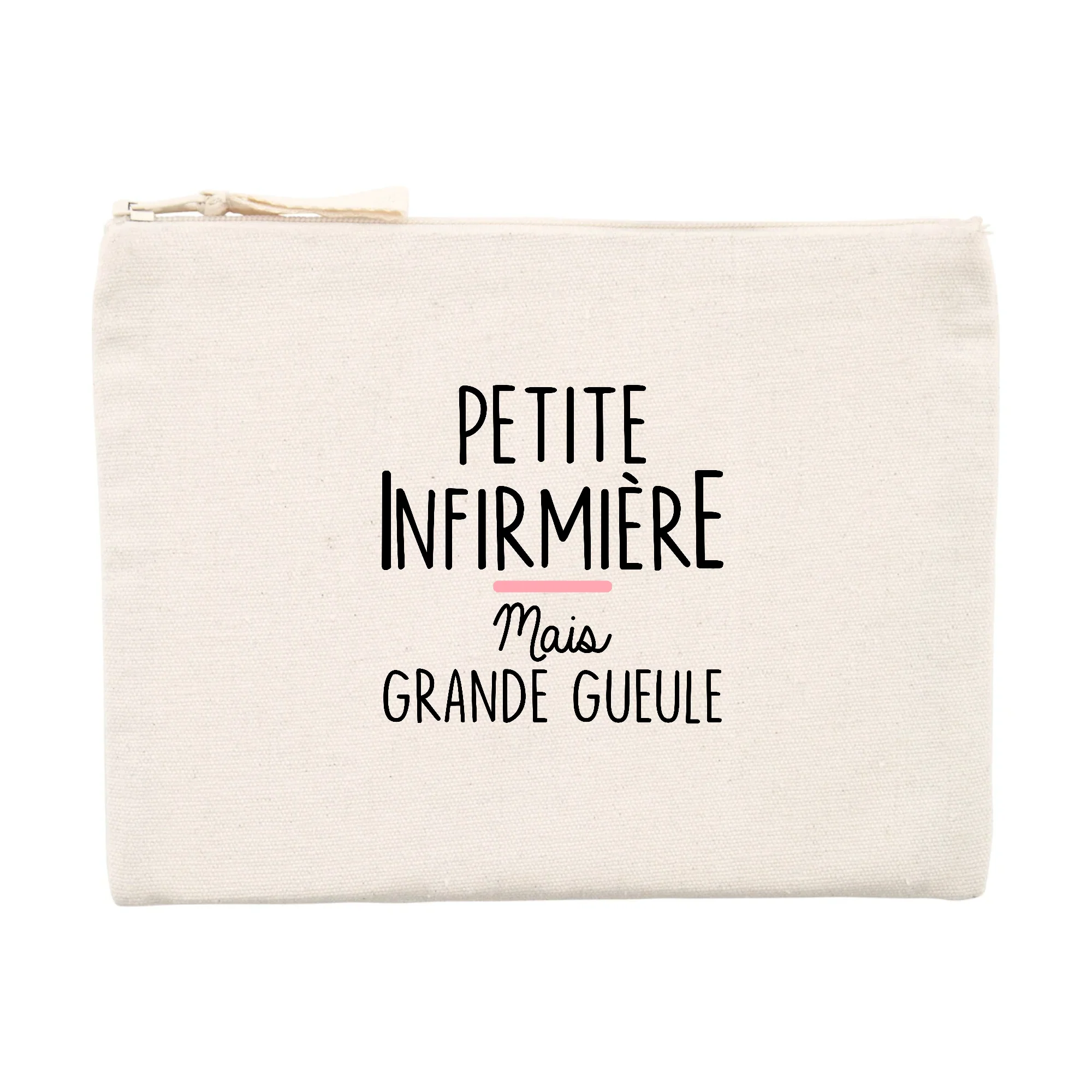 Une pochette d’excellente qualité Pochette 80% coton recyclé 🌱, 20% polyester recyclé Ouverture zippée Imaginée et imprimée en France Idée cadeau pour infirmiere Dimensions : 21.5 x 16 cm Lavable en machine, 30°C Peut servir de trousse, porte-monnaie ou trousse à maquillage