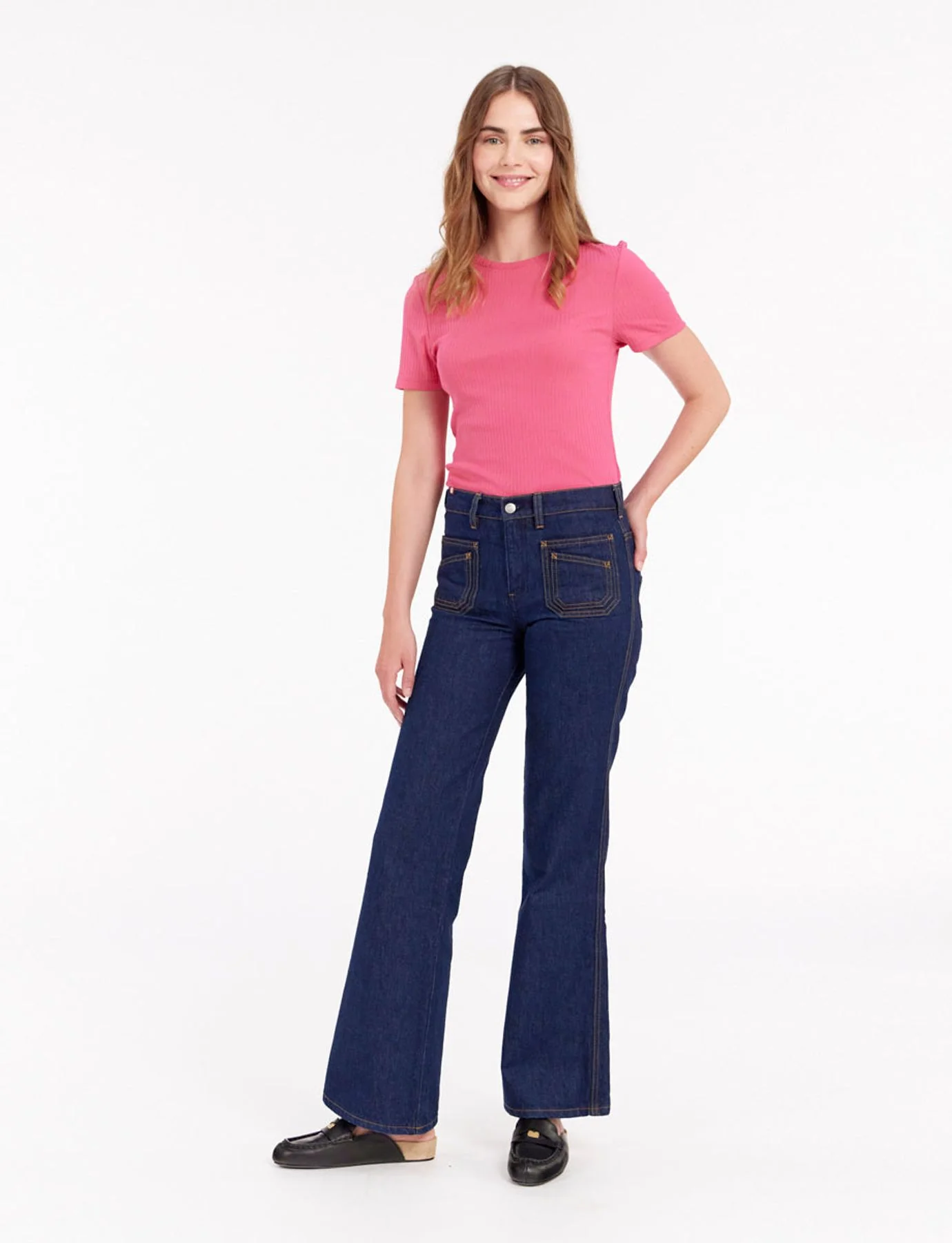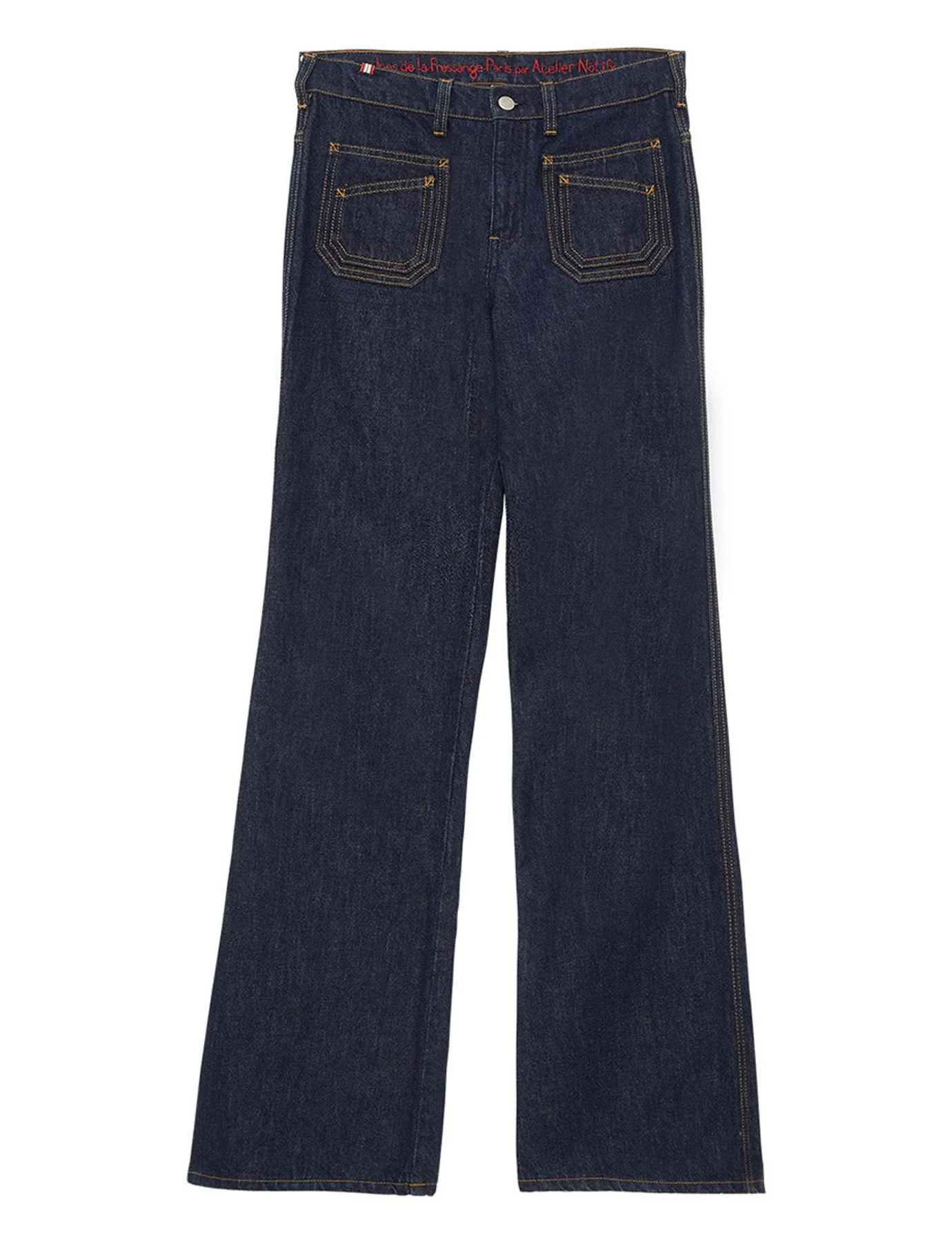 Ines de la Fressange Paris s’est associée à l’Atelier Notify, spécialiste reconnu du Denim, pour concevoir une ligne complète de jeans, véritable hommage au chic parisien et à l’élégance décontractée. Le jean Rica bleu marine a une coupe flare qui conviendra très bien à vos looks décontractés.