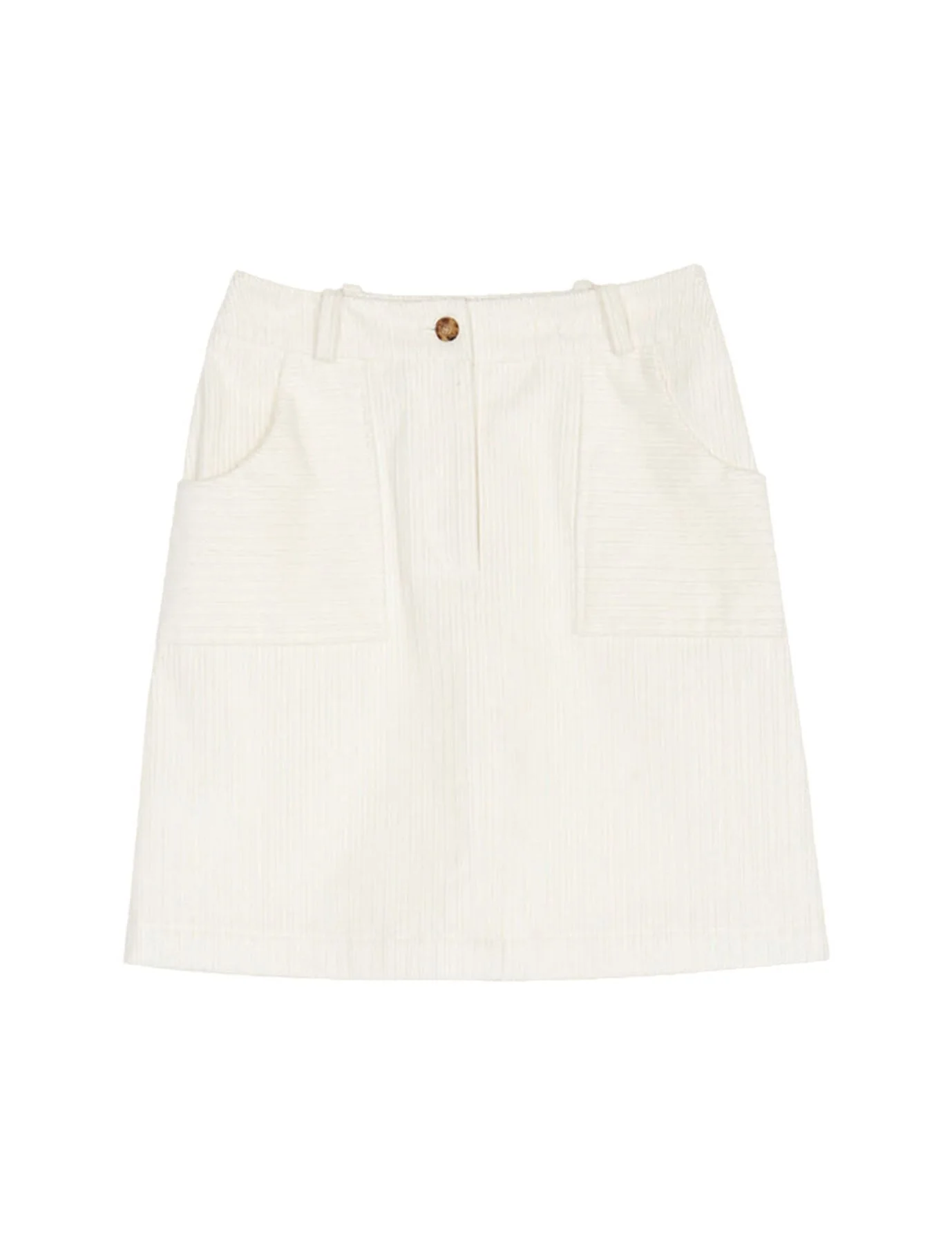 La jupe Anethe, pièce classique et intemporelle de la garde-robe parisienne, se décline cette saison sous une nouvelle forme : un élégant velours côtelé écru. Associez la à un petit pull et à une paire bottines en cuir pour un look hivernale chaud et habillé.Composition : 100% coton Designed in Paris