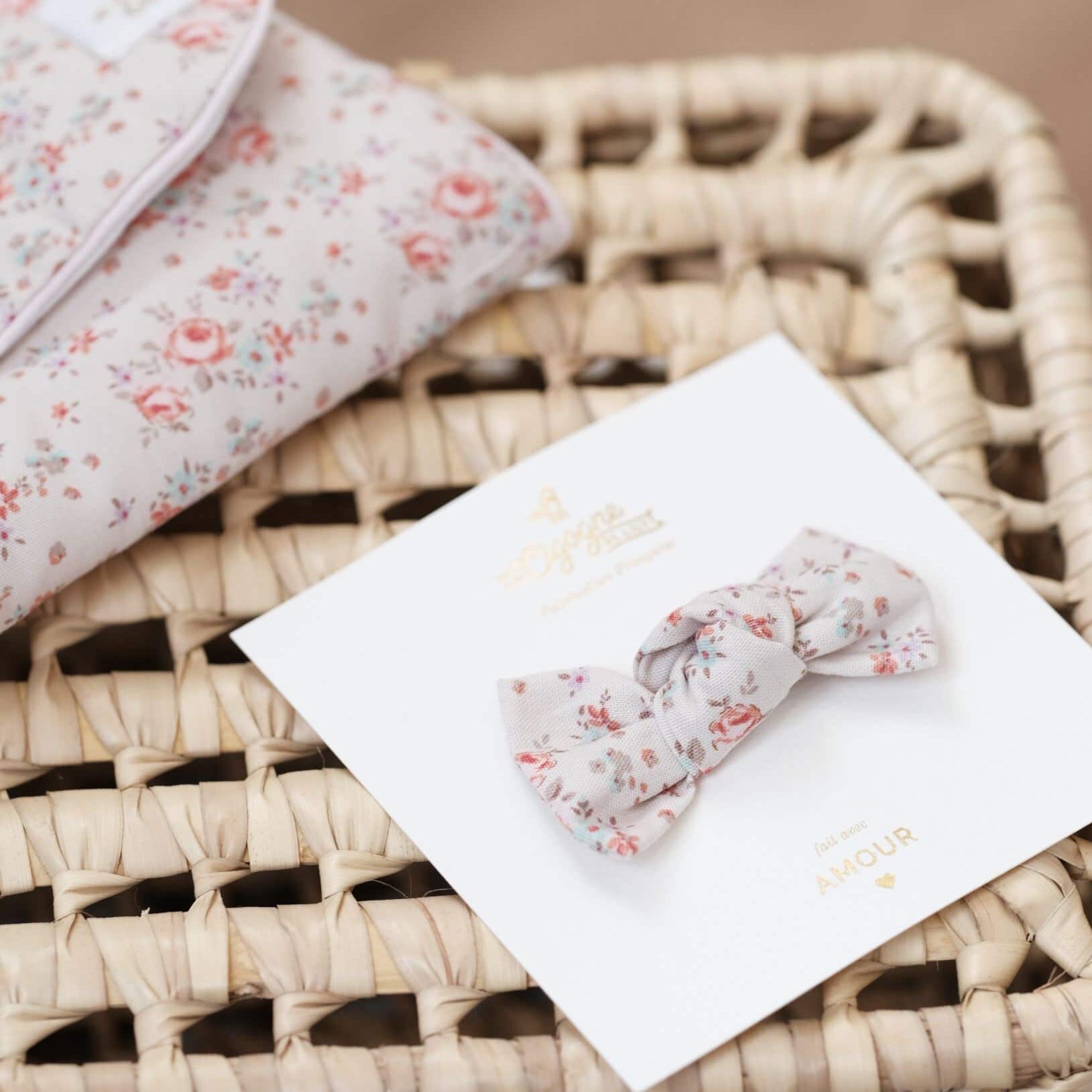 Un noeud qui fera fureur sur les cheveux de vos princesses ! Un grand noeud monté sur une pince croco. Cette pince croco permet une grande ouverture pour ne pas tirer les cheveux épais ou frisés. Monture “crocodile” en métal. Dimension 8cm environ Tissu imprimé 100% coton certifié Oeko-tex Retrouvez ICI toutes nos jolies barrettes vendues à l’unité ou en lot de 3.