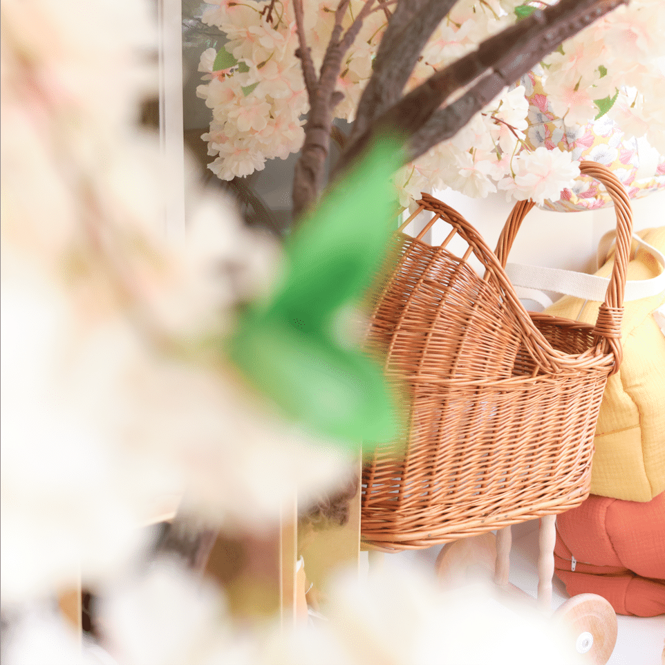 Ce petit parc de poupée en rotin et bambou a été conçu par Minikane pour les poupées et poupons Gordis. Une très jolie pièce associée ici d’un tapis à l’adorable imprimé végétal complètement mixte.
