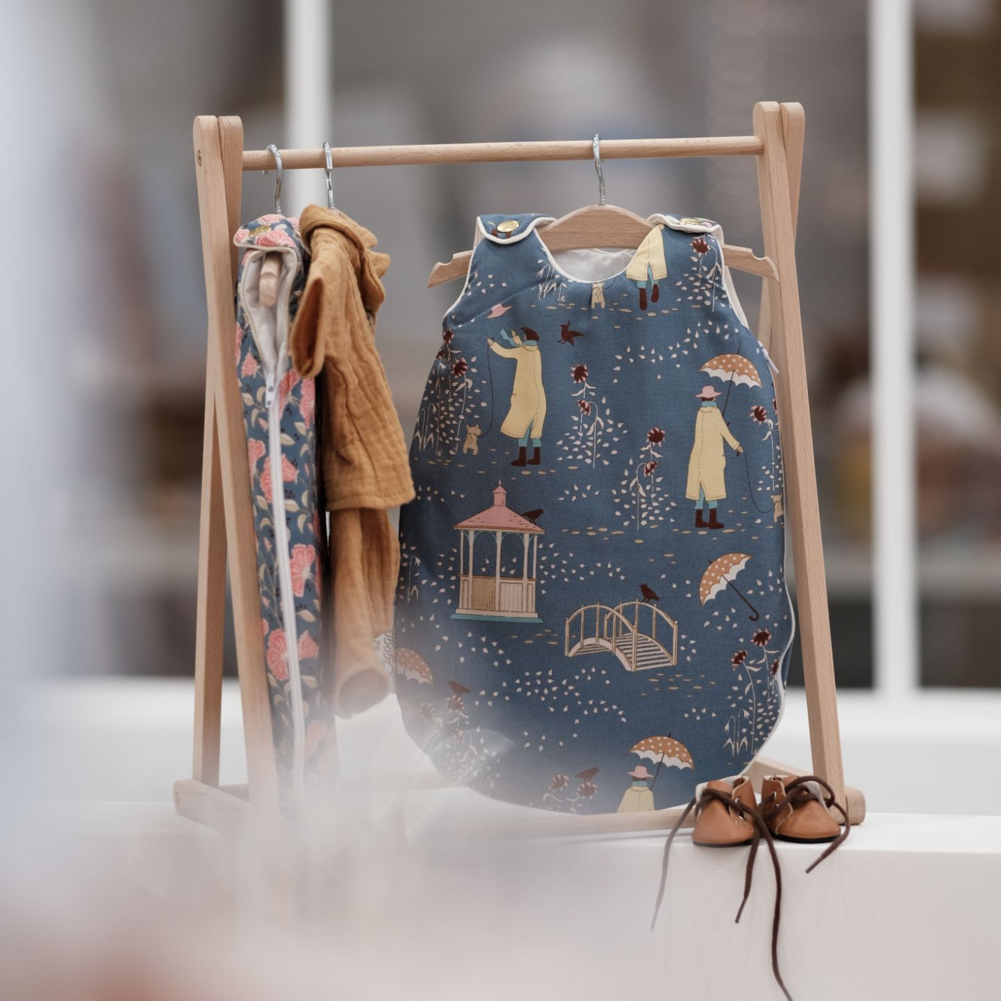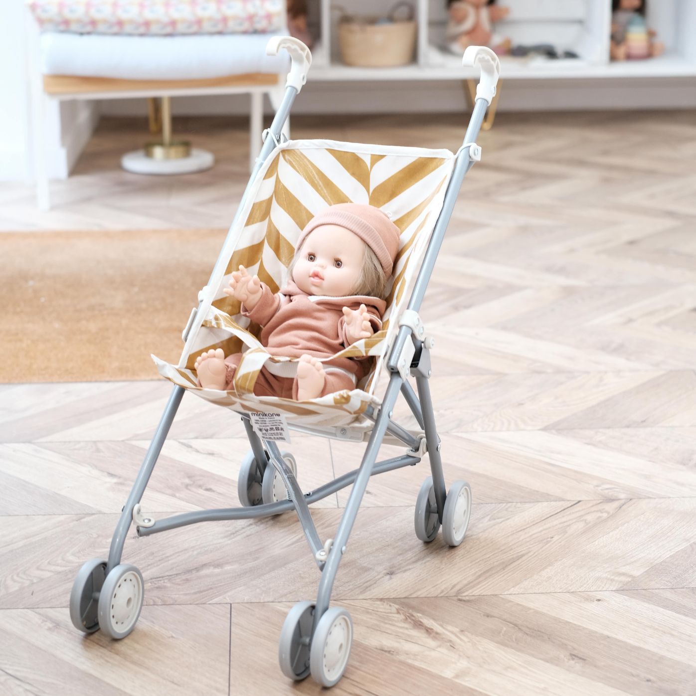 | Mobilier poupée | Couffin, Landeau, Parc, Portant à vêtements, Porte bébé fleurs, Porte bébé lurex, Poussette Stripes moutarde, Poussette Stripes quartz, Valise bambou |