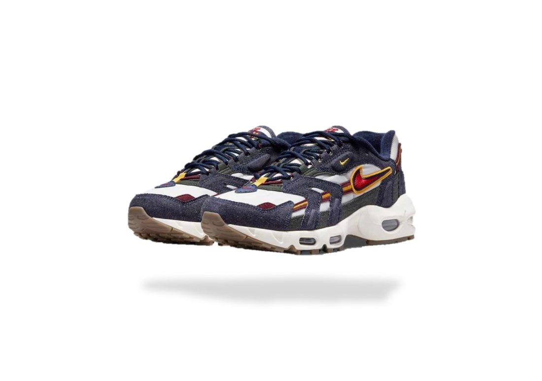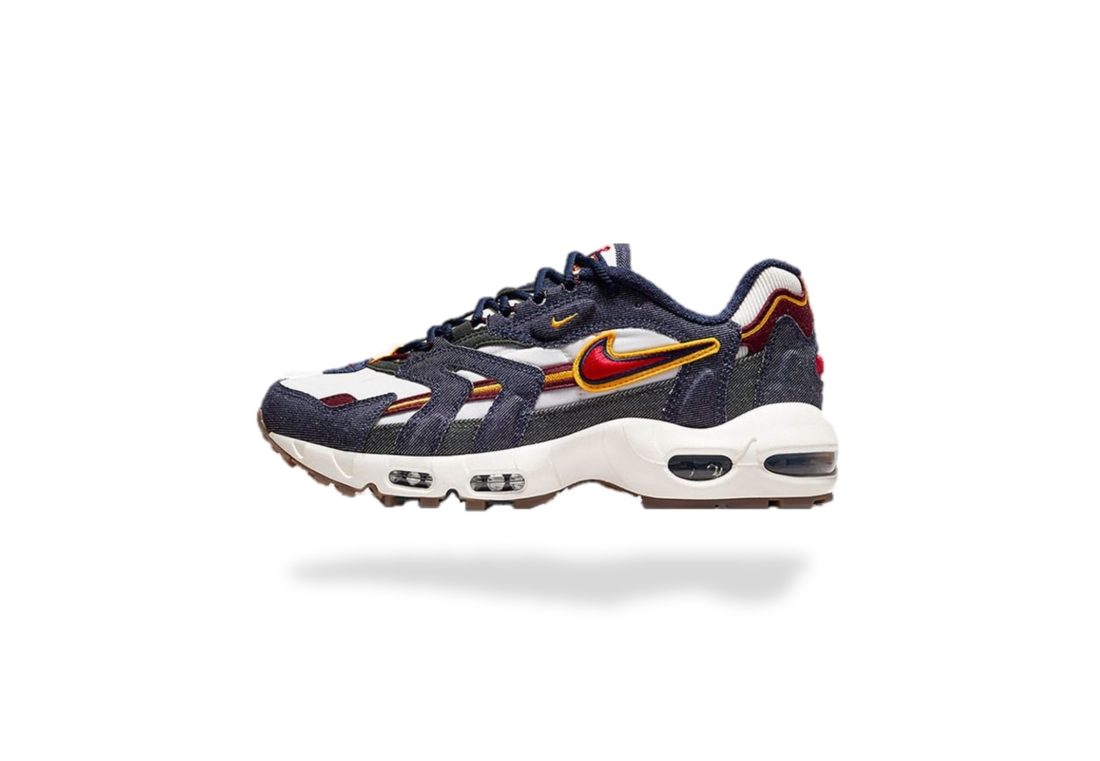 LIVRAISON OFFERTE – RETOUR SIMPLE, RAPIDE, ET GRATUIT Livraison offerte France Métropolitaine, Guadeloupe, Martinique, Guyane, La Réunion et dans le monde entier NIKE AIR MAX 96 II QS BLACKENED BLUE Couleur: Blackened Blue/Gym Red Matière/ Composition: CUIR/ SYNTHÉTIQUE/ TEXTILE L’emblématique NIKE AIR MAX 96 II QS BLACKENED BLUE s’offre un relooking universitaire et affiche une base en mesh et velours côtelé blanc cassé. On distingue ensuite quelques empiècements en daim bordeaux, de même que plusieurs superpositions en denim brut. Des accents rouges et jaunes sur les brandings, la déesse de la victoire sur les insoles, ainsi qu’une gumsole, apportent la touche finale.