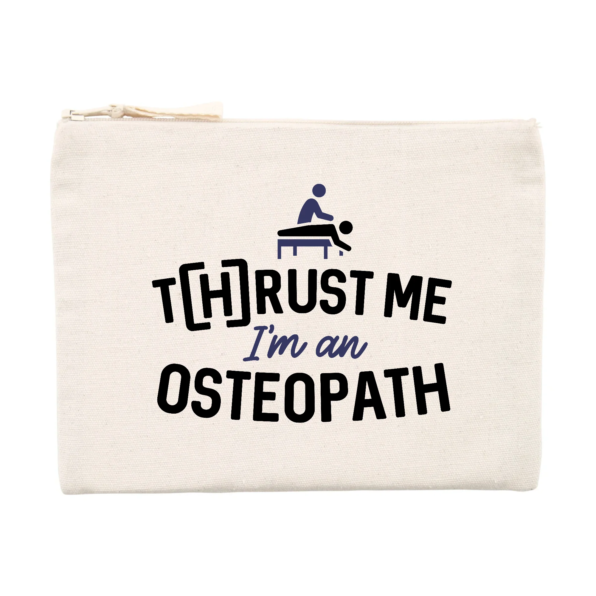 Cadeau idéal pour ostéopathe Dimensions : 21.5 x 16 cm Motif personnalisé pour soignant Peut servir de trousse, porte-monnaie ou trousse à maquillage Une jolie trousse d’excellente qualité Trousse 80% coton recyclé 🌱, 20% polyester recyclé Ouverture zippée Imaginée et imprimée en France