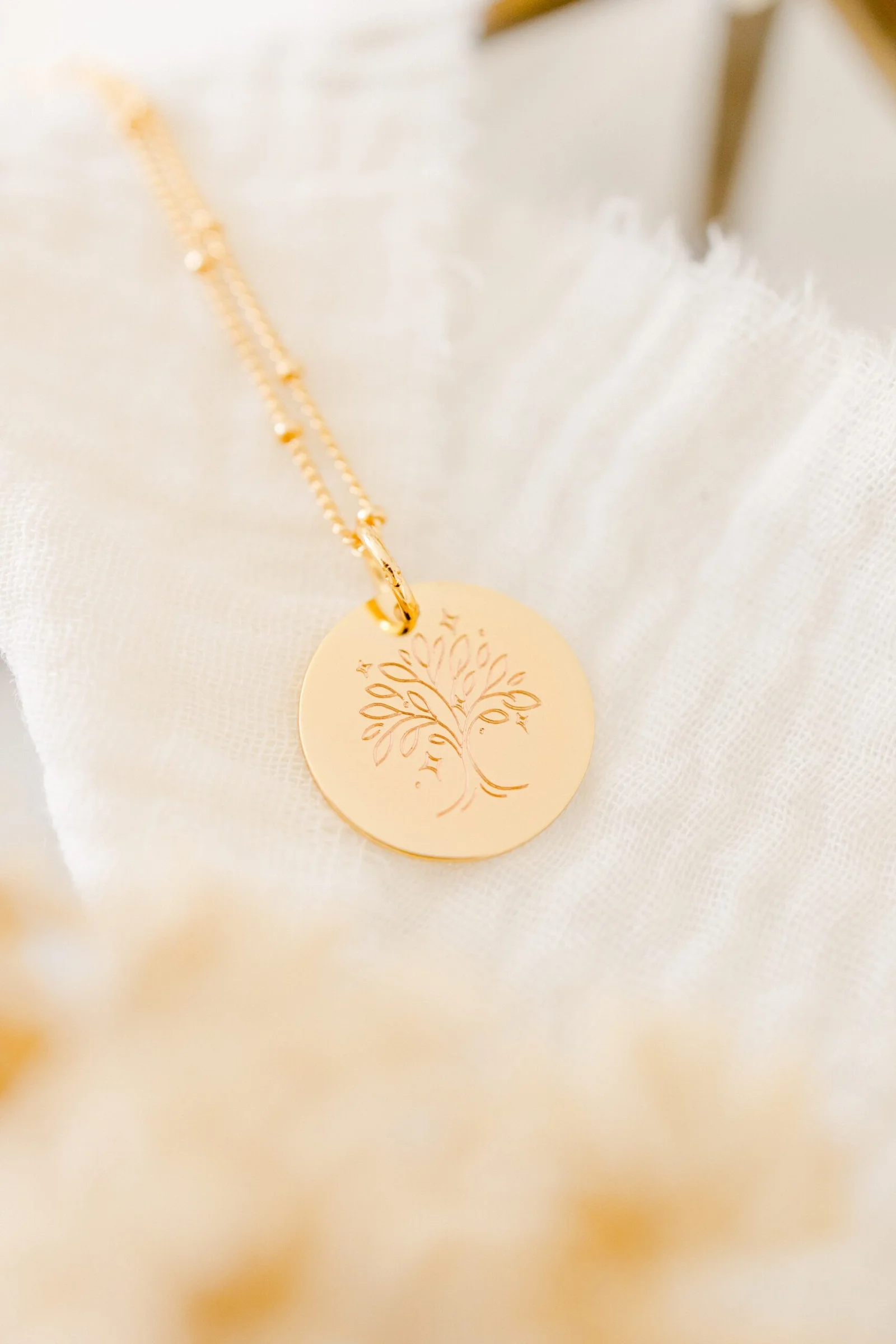 Pendentif personnalisé médaille ronde or ARBRE DE VIE