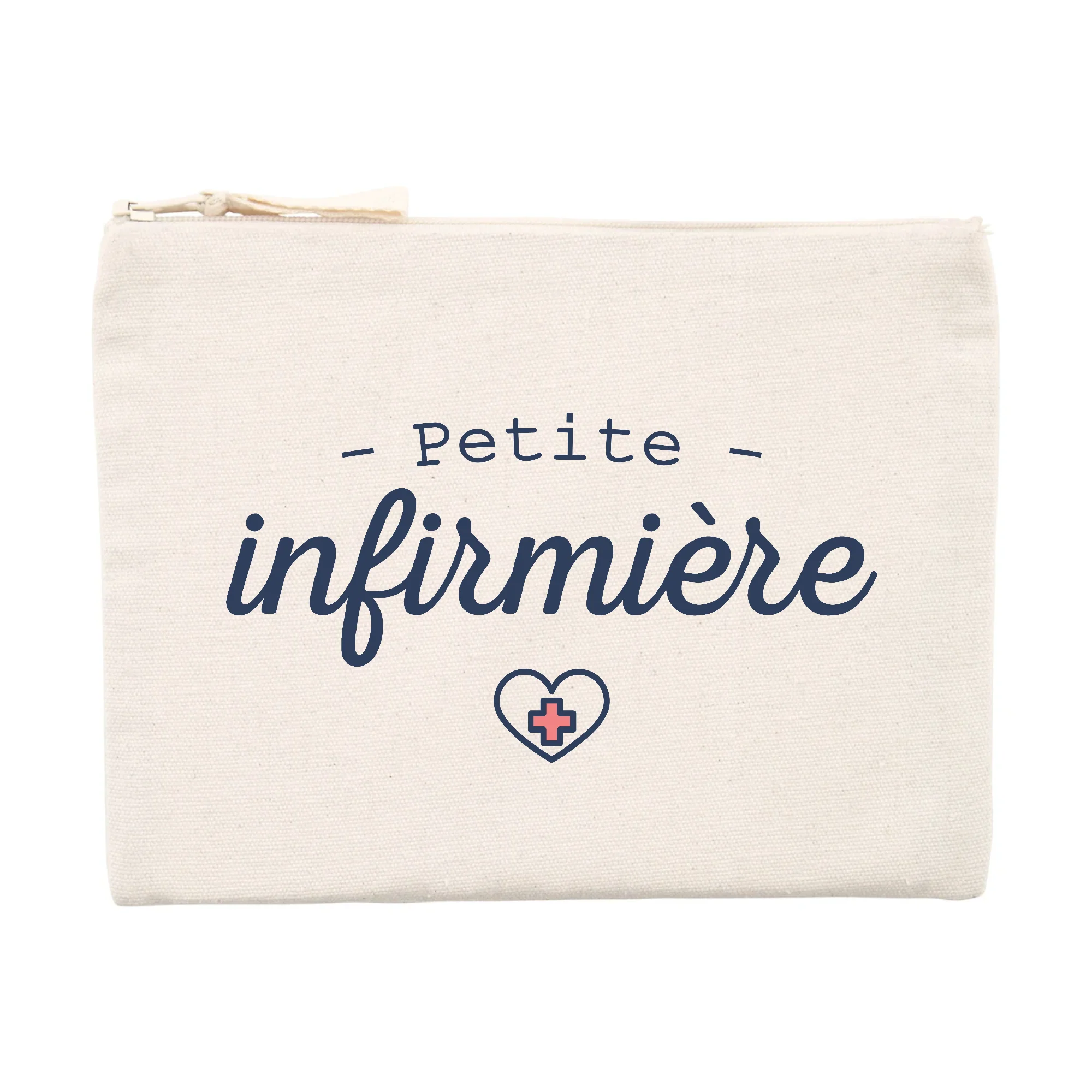 Une pochette d’excellente qualité Pochette 80% coton recyclé 🌱, 20% polyester recyclé Ouverture zippée Imaginée et imprimée en France Idée cadeau pour infirmiere Dimensions : 21.5 x 16 cm Lavable en machine, 30°C Peut servir de trousse, porte-monnaie ou trousse à maquillage