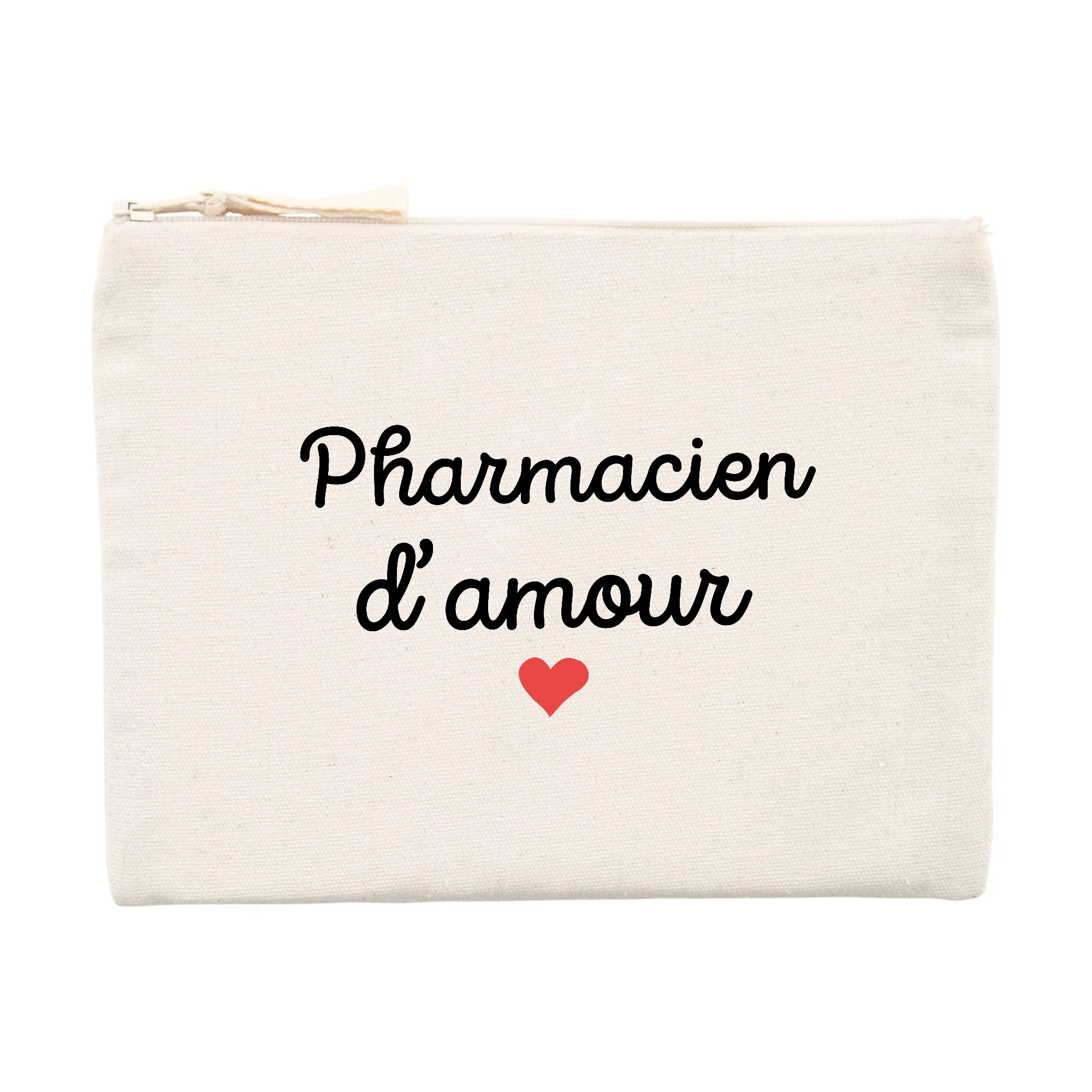 Une pochette d’excellente qualité Pochette 80% coton recyclé 🌱, 20% polyester recyclé Ouverture zippée Imaginée et imprimée en France Emballage cartonné recyclé et recyclable Pochette personnalisée pour pharmacien d’amour Dimensions : 21.5 x 16 cm Lavable en machine, 30°C Peut servir de trousse, porte-monnaie ou trousse à maquillage