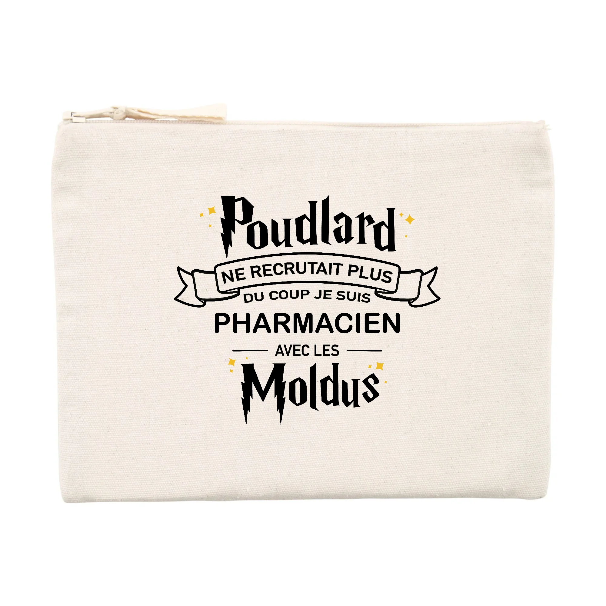 Une pochette d’excellente qualité Pochette 80% coton recyclé 🌱, 20% polyester recyclé Ouverture zippée Imaginée et imprimée en France Emballage cartonné recyclé et recyclable Pochette personnalisée pour pharmacien Dimensions : 21.5 x 16 cm Lavable en machine, 30°C Peut servir de trousse, porte-monnaie ou trousse à maquillage