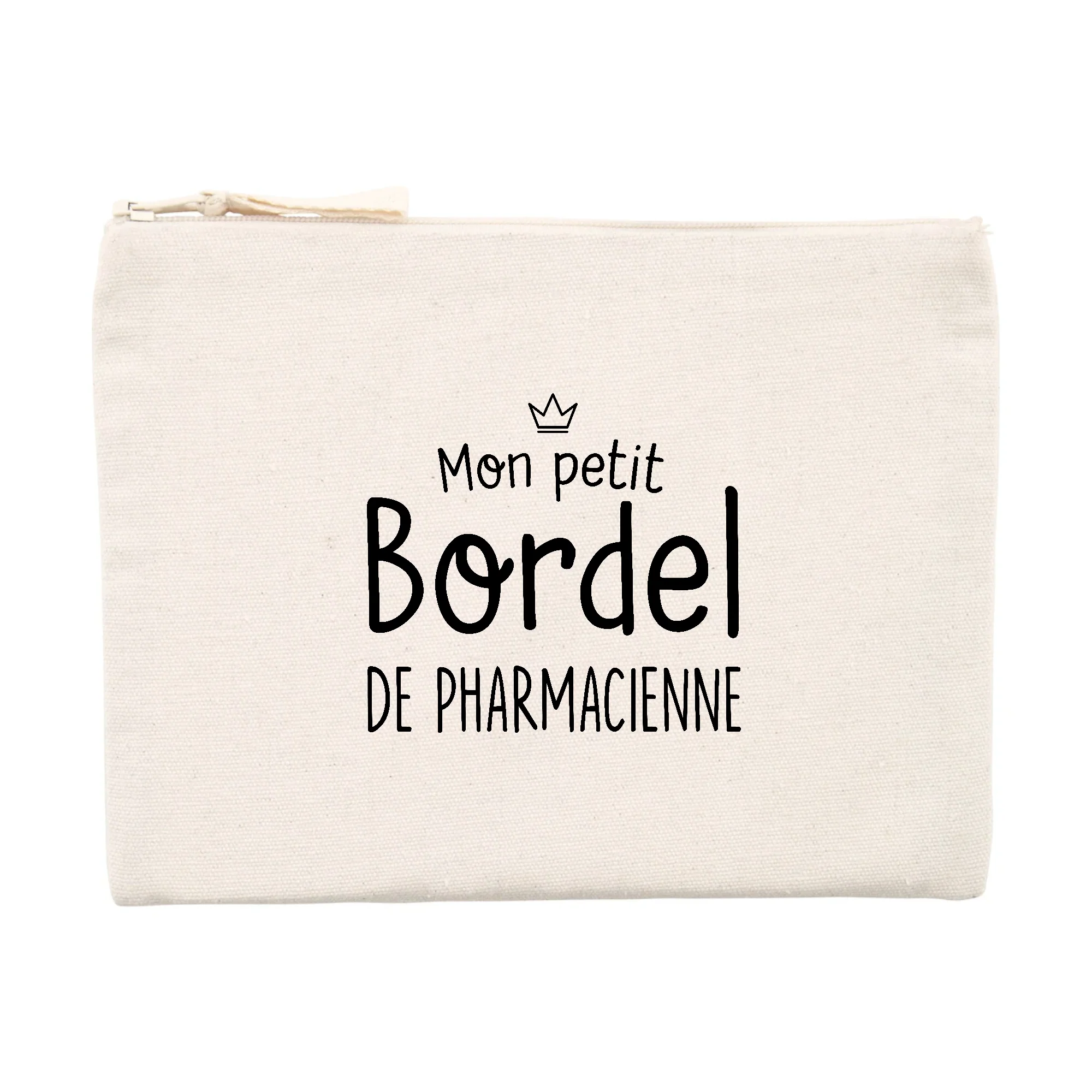 Une pochette de excellente qualité Pochette 80% coton recyclé 🌱, 20% polyester recyclé Ouverture zippée Imaginée et imprimée en France Idée cadeau pour pharmacienne bordélique Dimensions : 21.5 x 16 cm Lavable en machine, 30°C Peut servir de trousse, porte-monnaie ou trousse à maquillage