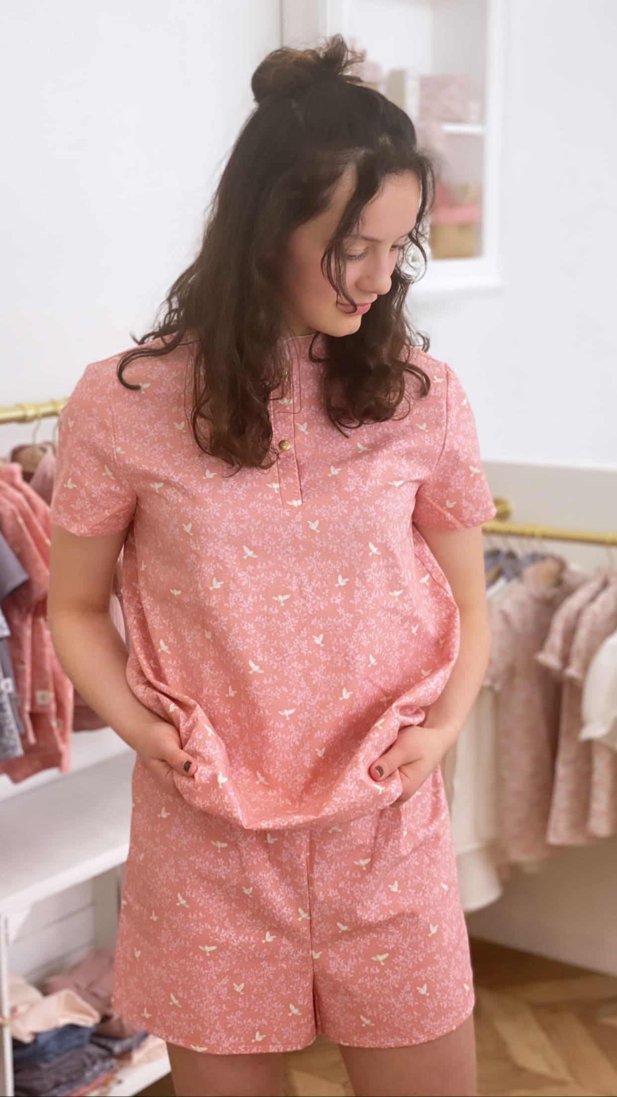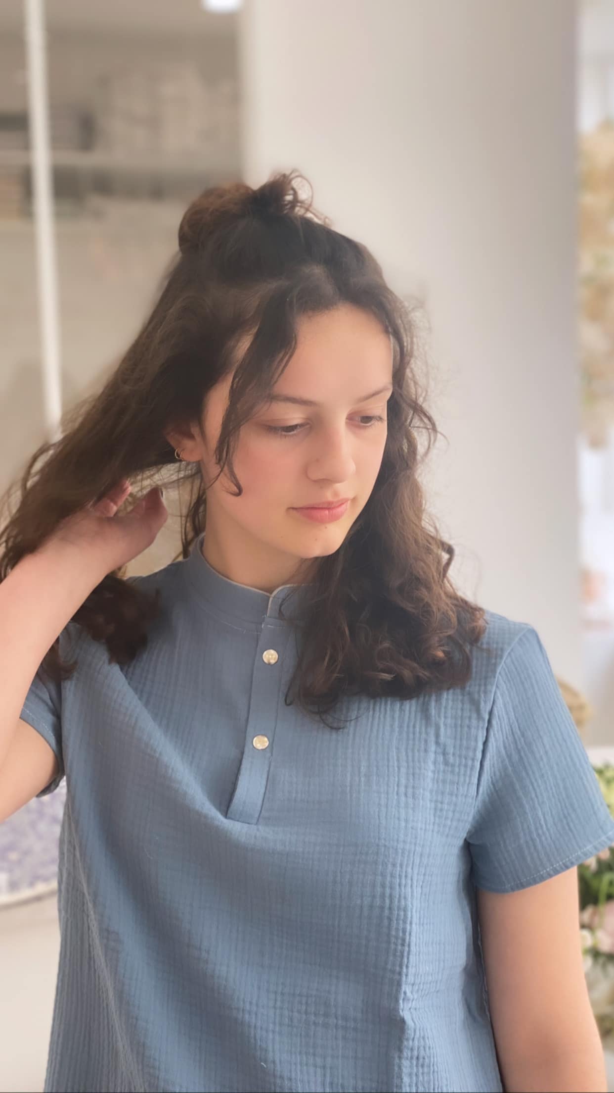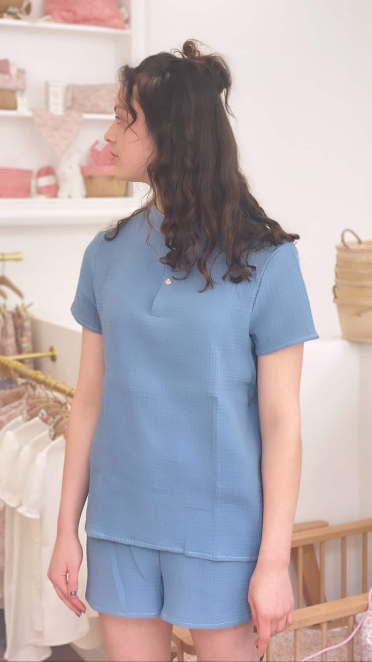 Une matière douce et agréable à porter, légère comme un voile de coton. La double gaze sera amenée à rétrécir légèrement au lavage.