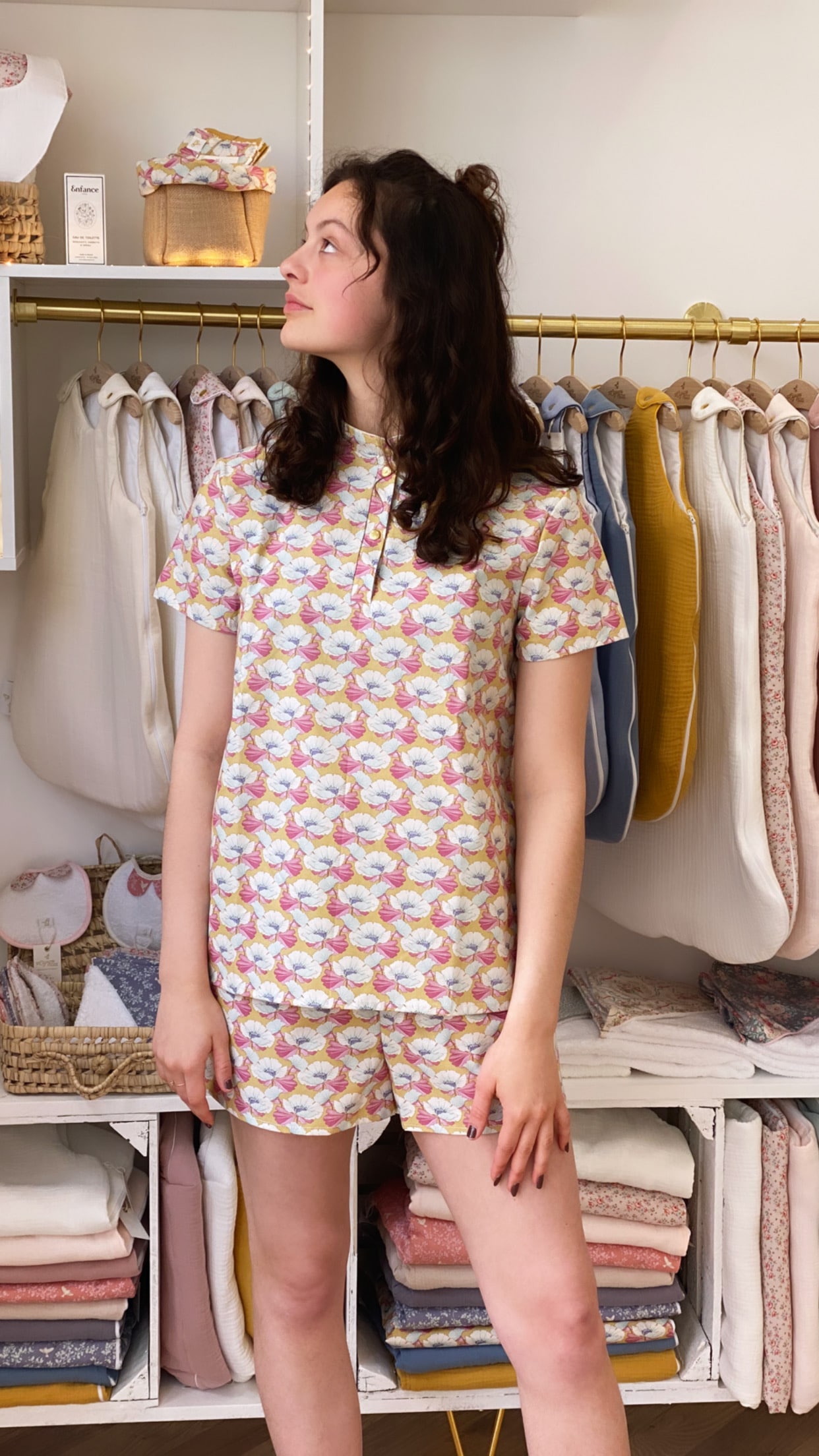 Le pyjama assorti à son enfant ! Le duo parfait : c’est décidé, cet été maman sera assortie avec sa fille, son fils mais aussi le petit dernier ! Découvrez nos pyjamas pour adulte. une coupe sympa, originale avec son petit col mao un confort absolu, grâce à sa double de gaze de coton bio ou ses imprimés 100% coton notre indispensable : la fabrication française 😉 et notre petit plus : vous pouvez vous assortir avec vos chérubins ! Si tout ces éléments sont aussi importants vous vous que pour nous alors nos pyjamas vous séduiront forcément. Une taille…