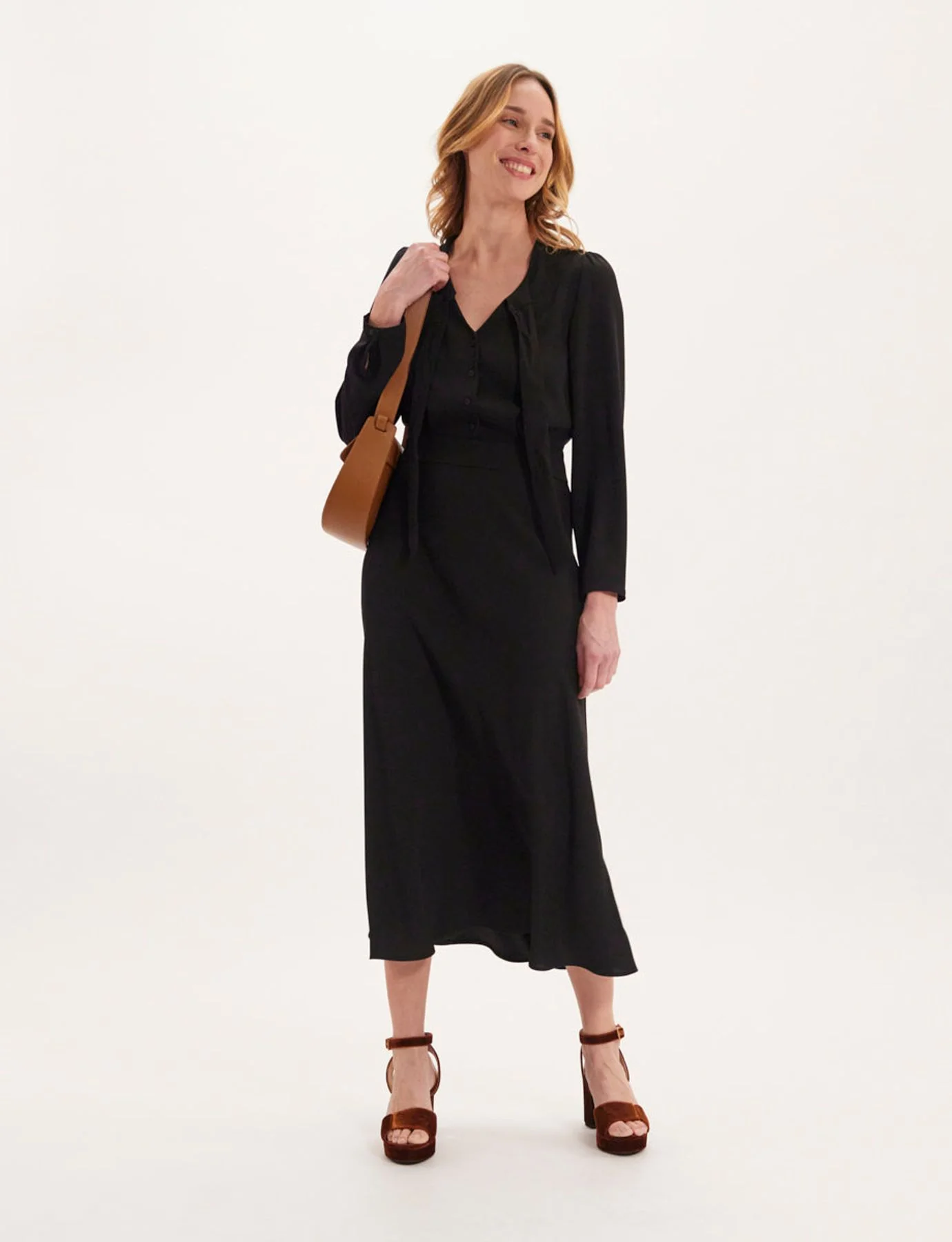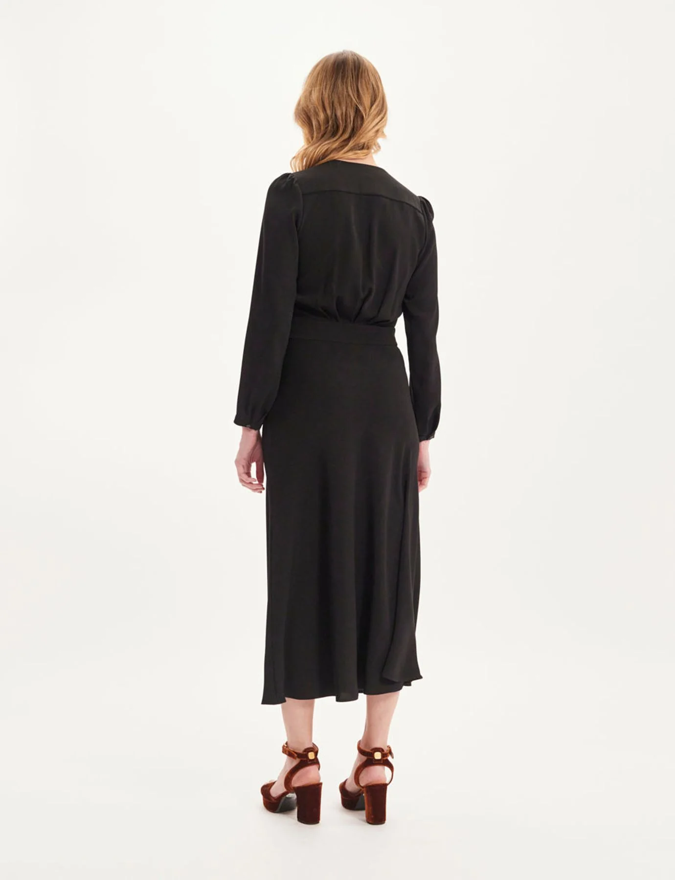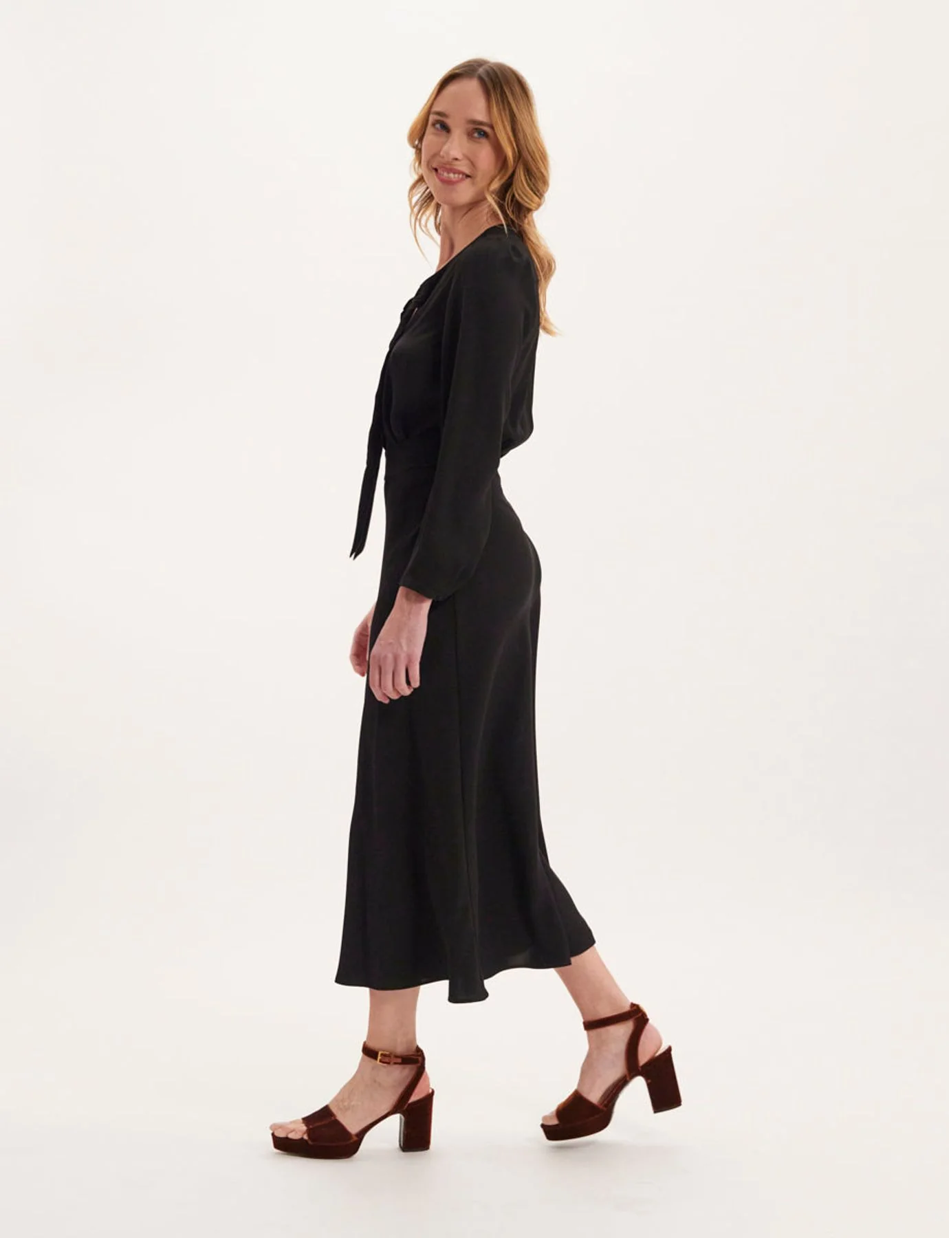 Le col en V avec son noeud est un détail subtil et élégant qui ajoute une touche de sophistication à cette robe. Sa longueur et sa coupe soulignent votre silhouette de manière flatteuse et sa couleur en fait une robe très adaptée à une tenue de cocktail. Robe longue