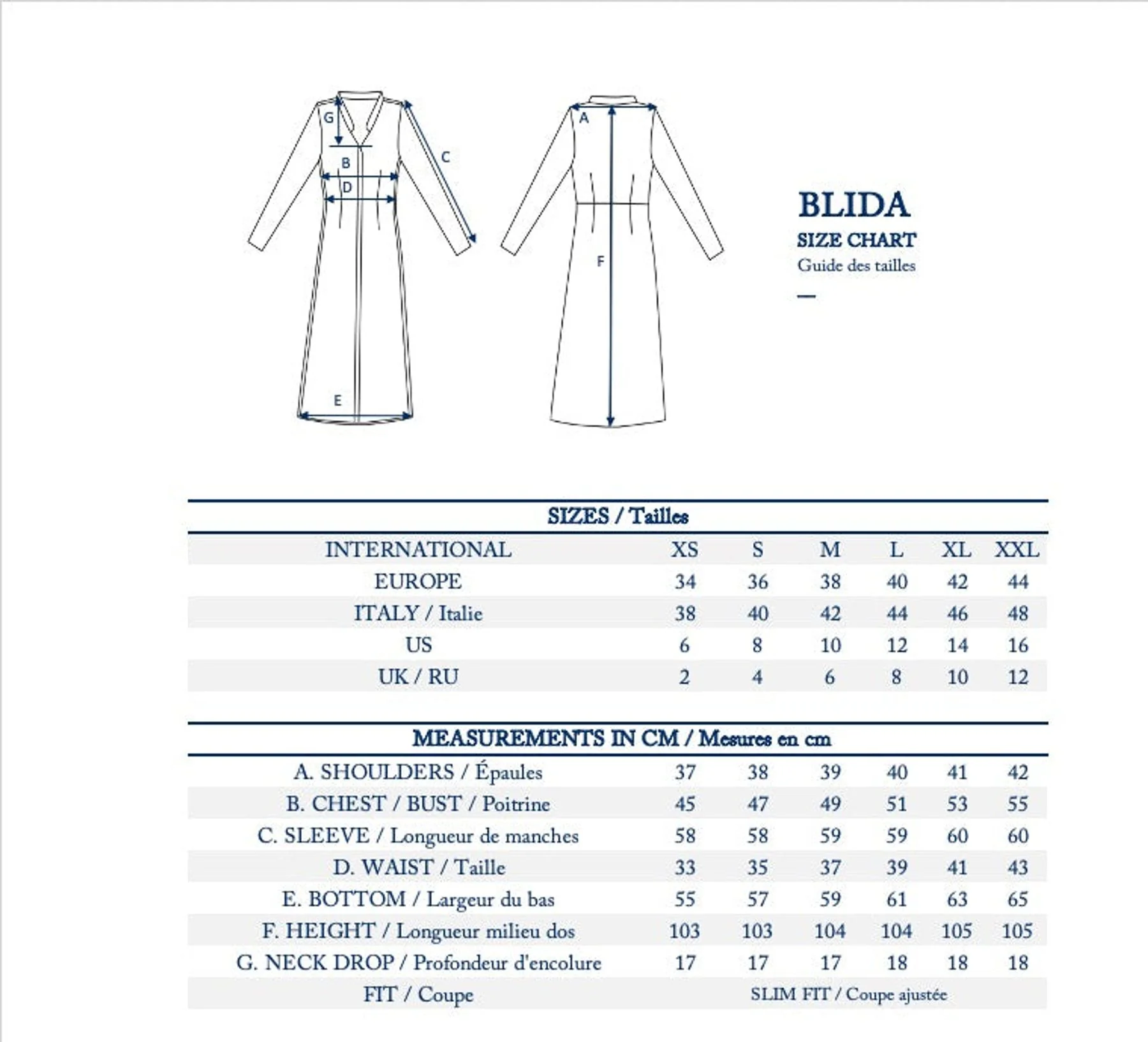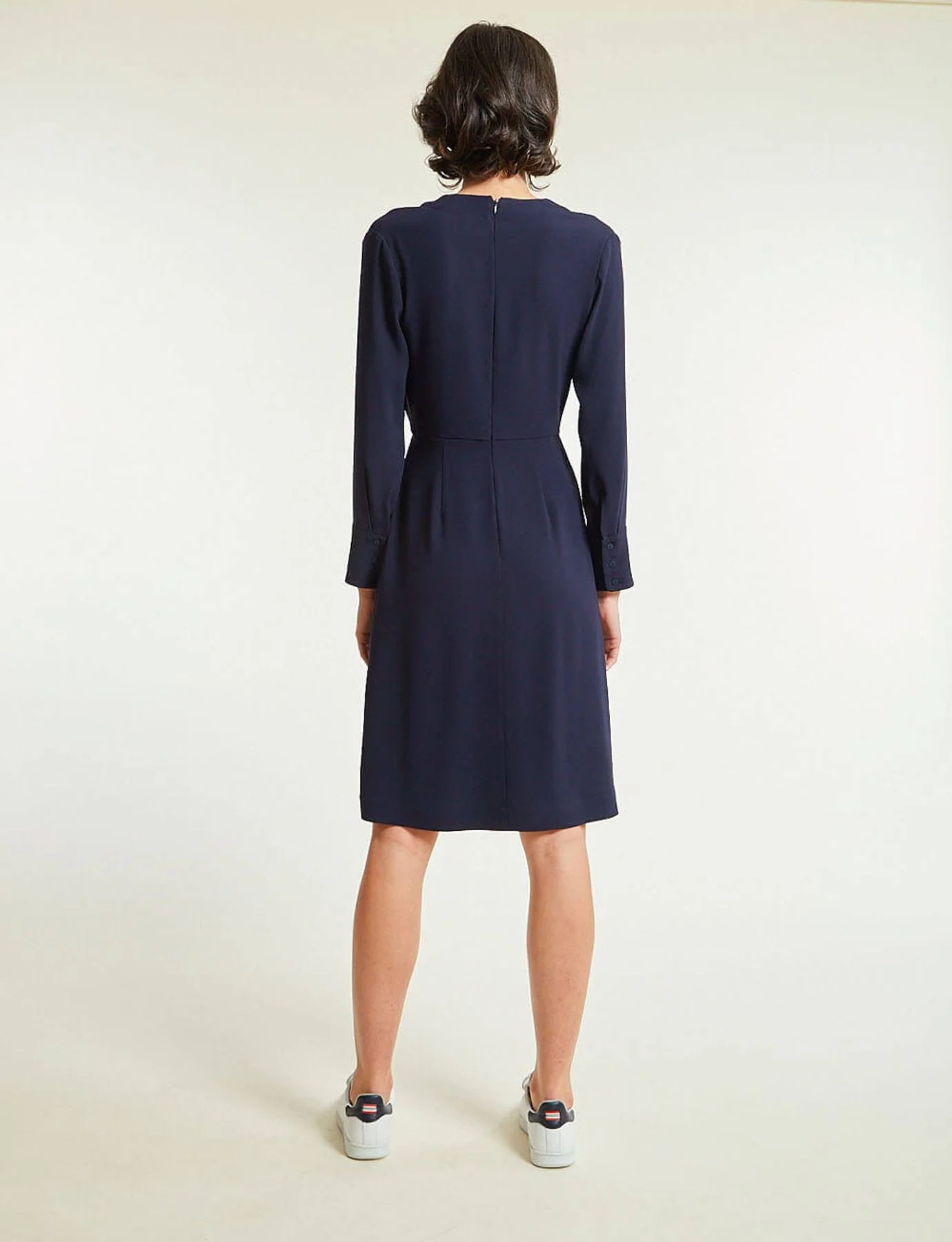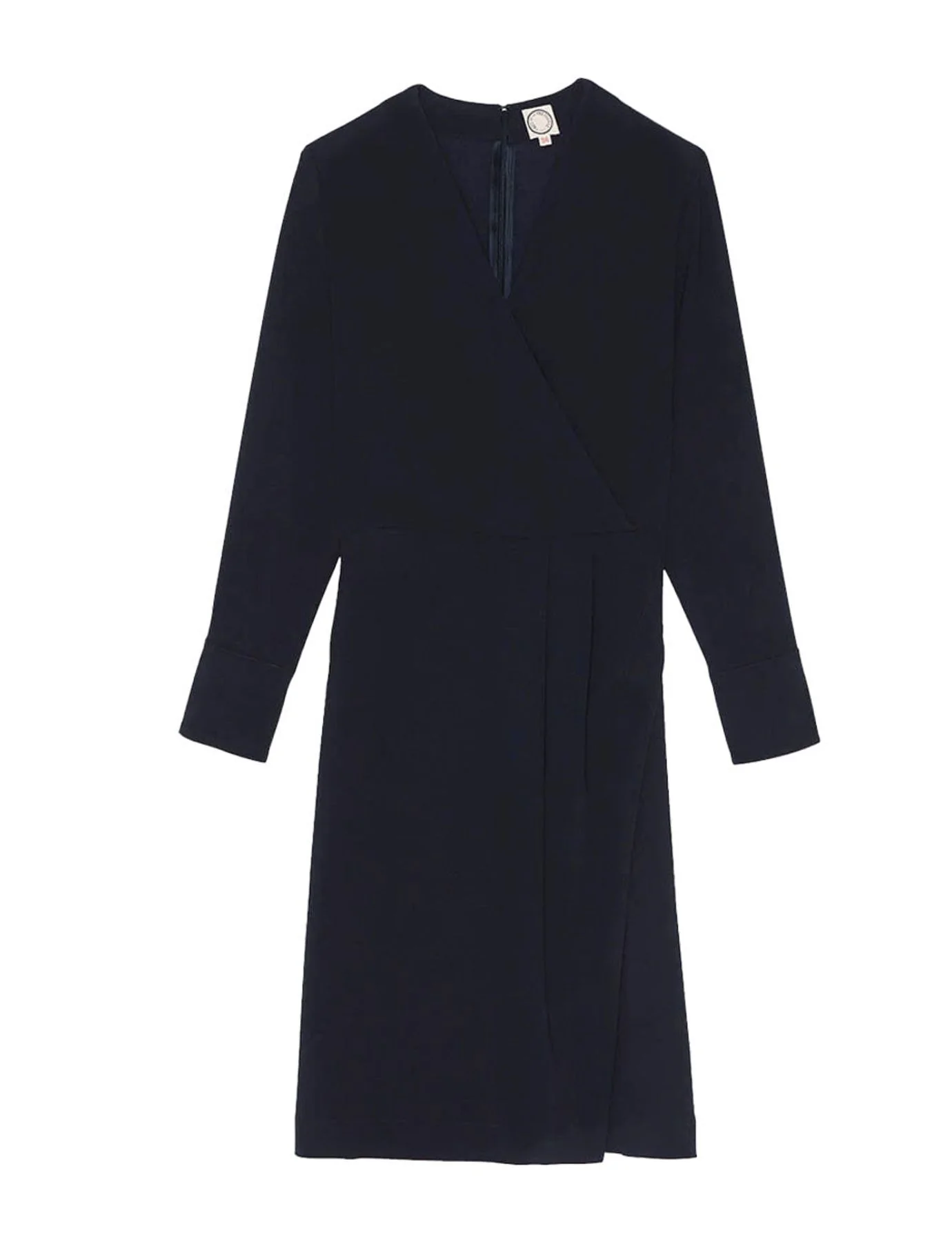 La robe Blida mi-longue bleu marine est la pièce intemporelle de la saison.