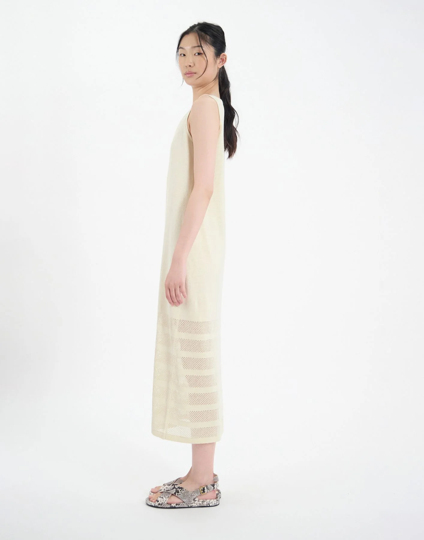 Casilda allie chic et confort : en 100% lin, elle peut se porter de jour comme de nuit. Ses détails transparents sauront retenir votre attention ; laissez-vous tenter par cette nouvelle robe. Robe CasildaCoupe DroiteCol rondSans manchesLongueur mi-molletDessinée à Paris