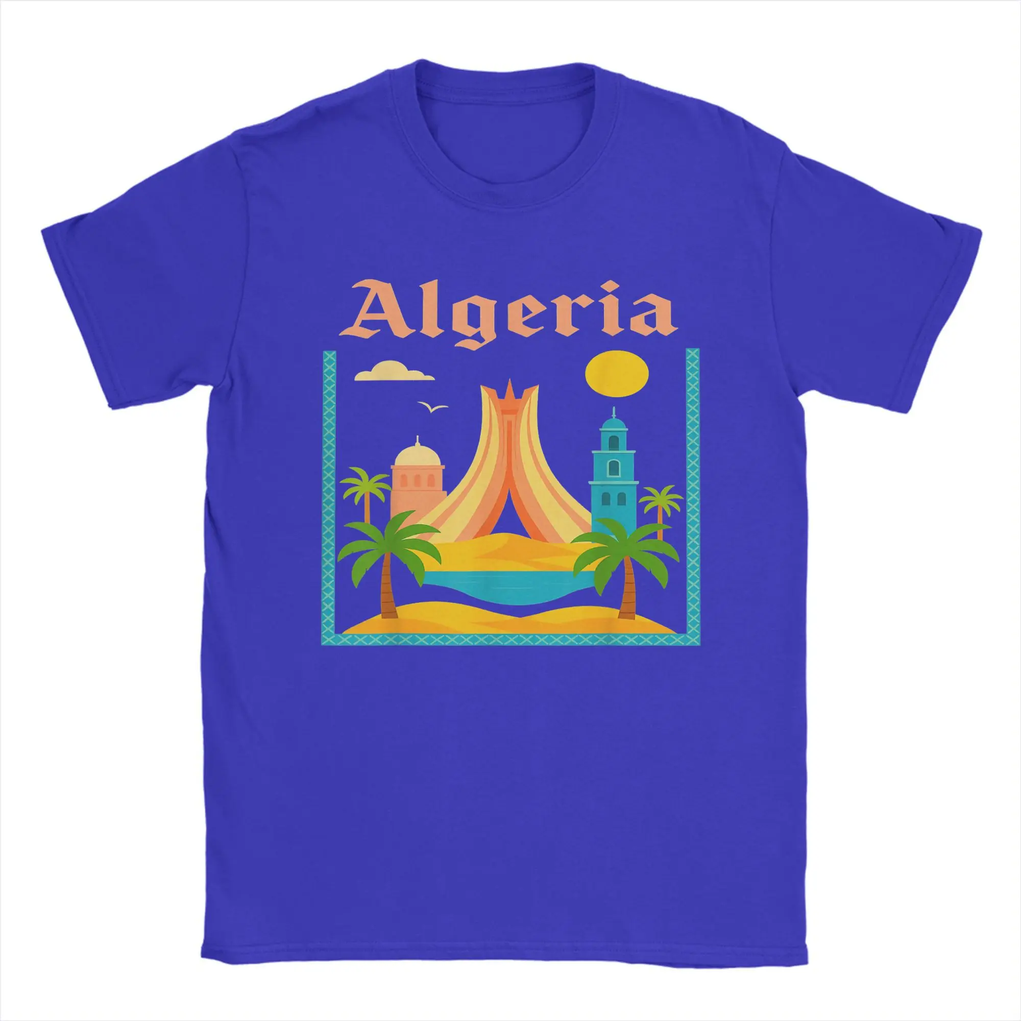 Affiche fièrement tes origines avec ce t-shirt 100 % coton inspiré de l’Algérie. Son imprimé coloré et graphique met à l’honneur un paysage typique du pays, entre culture, soleil et authenticité.