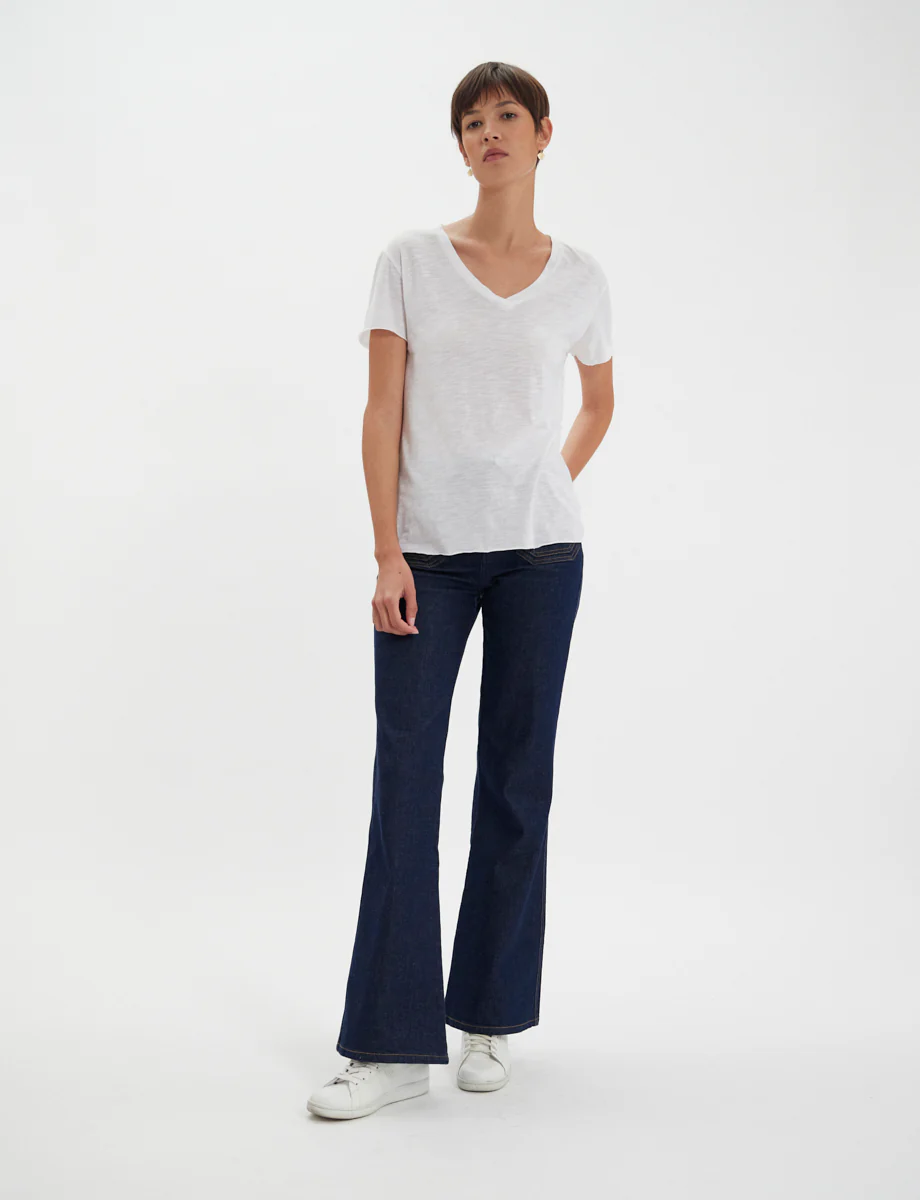 Le nouveau t-shirt Katalina à col V est un concentré d’élégance épurée. Les bords francs apportent une touche décontractée. T-shirt en jersey fin