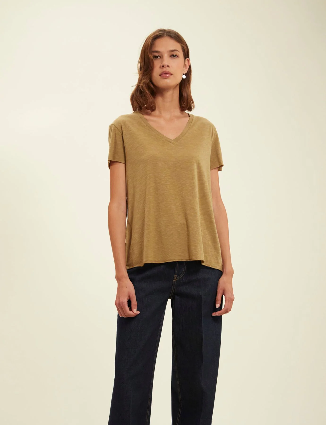 Le nouveau t-shirt Katalina à col V est un concentré d’élégance épurée. Les bords francs apportent une touche décontractée. T-shirt en jersey fin