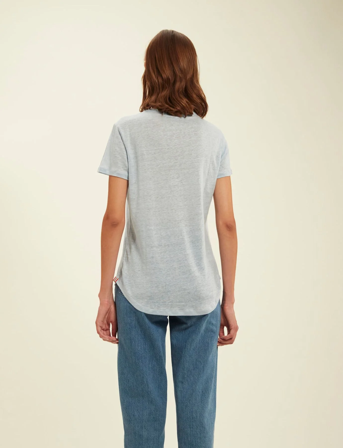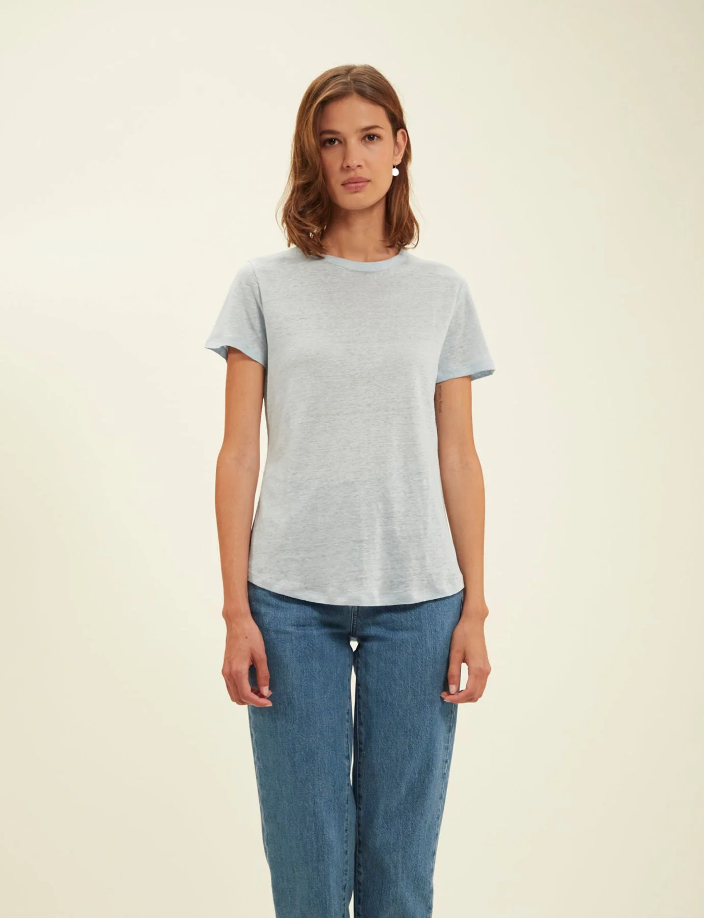 Adoptez le t-shirt Lisette en lin bleu clair, il s’accordera parfaitement avec un jean mom. T-shirt en jersey de lin