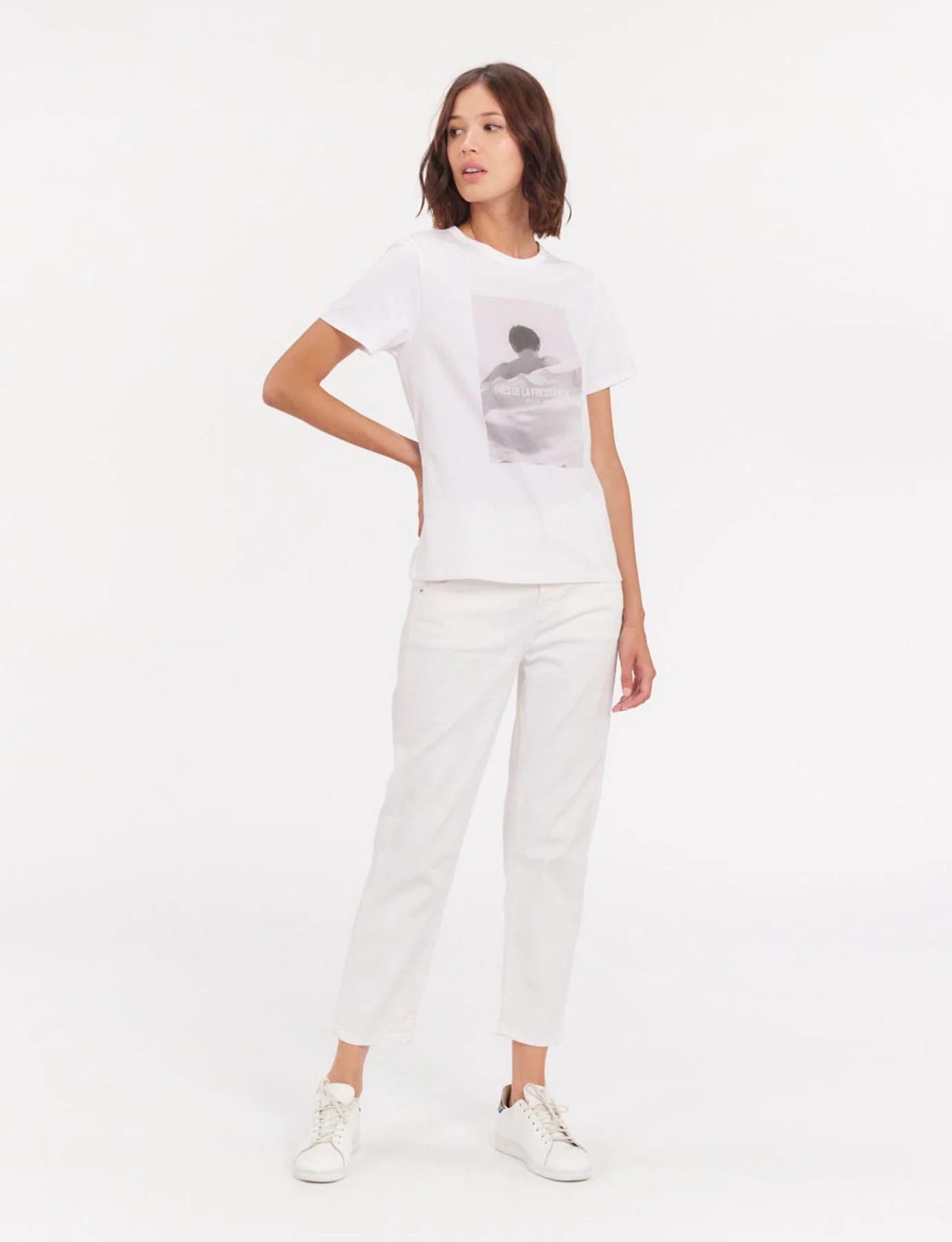 Découvrez le t-shirt Oscar blanc en coton. Ce t-shirt est original avec l’imprimé photo de mannequin avec le logo Ines de la Fressange.T-shirt en jerseyCoupe droiteCol rondComposition: 100% CotonDesigned in ParisFabriqué en Europe SÉRIE LIMITÉE